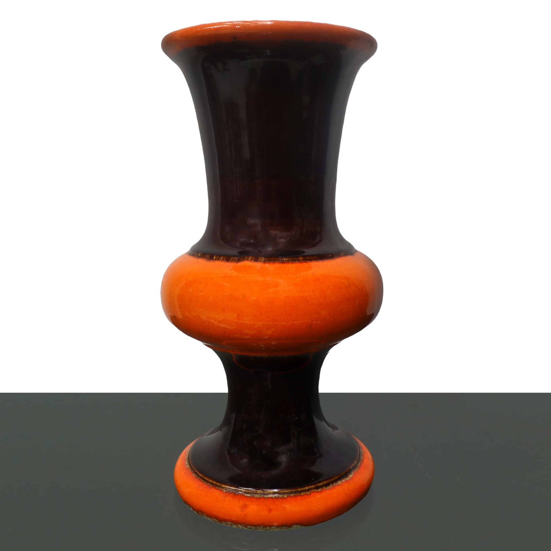 Vaso vintage in ceramica arancio e marrone