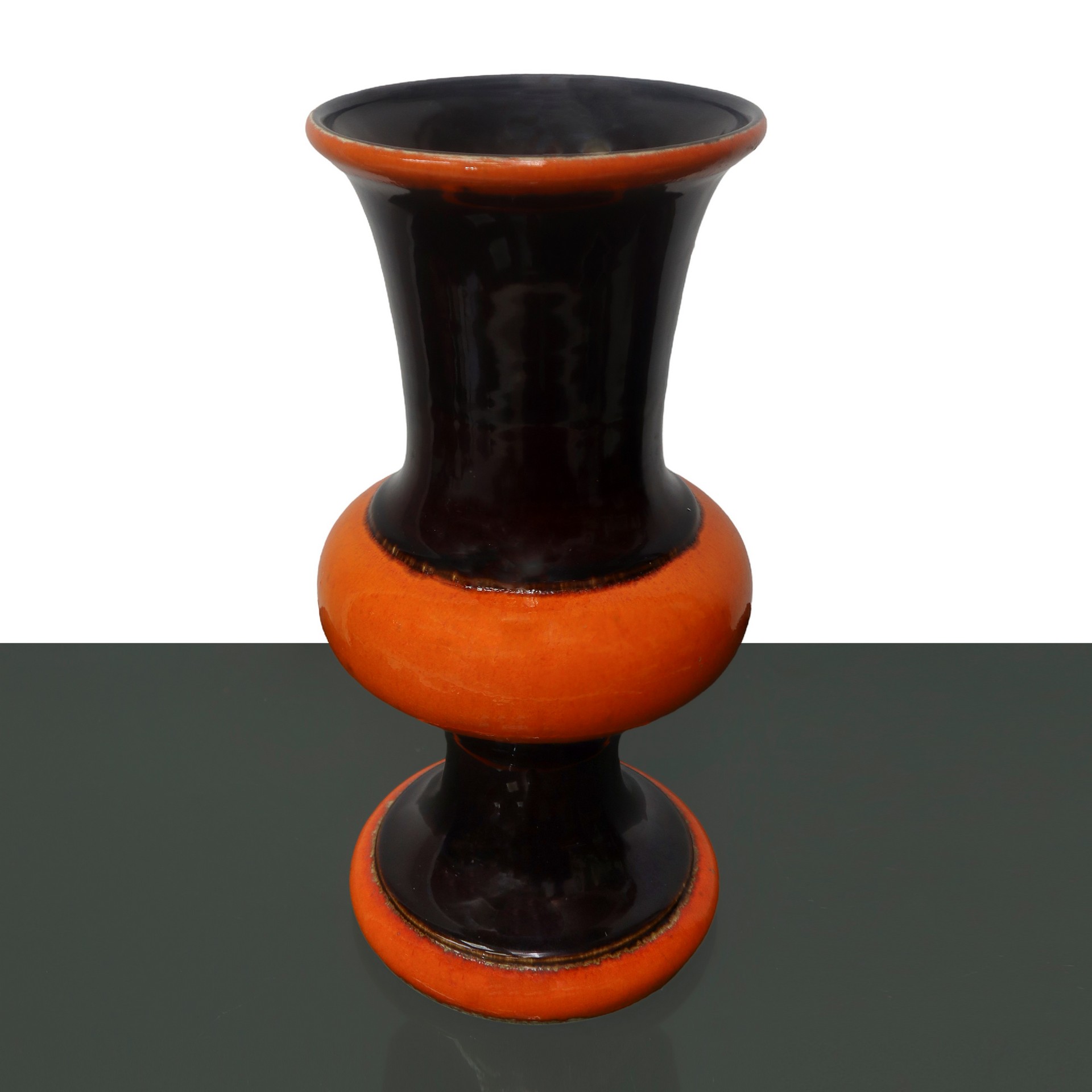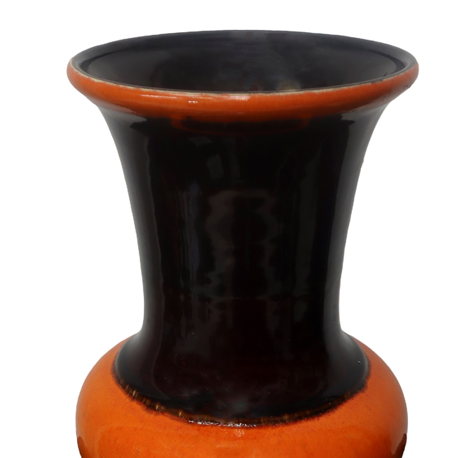 Vaso vintage in ceramica arancio e marrone H cm 30,5x14,5 Firma alla base "Jasba".Firma alla base "