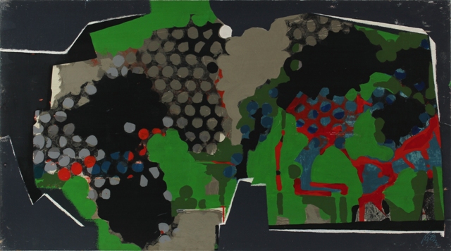 ENRICO DE TOMI Venezia 1912 - Roma 1983 Astratto, 1954 Olio su tavola, cm. 70 x 125 Firma in basso a destra Firma e data al retro
