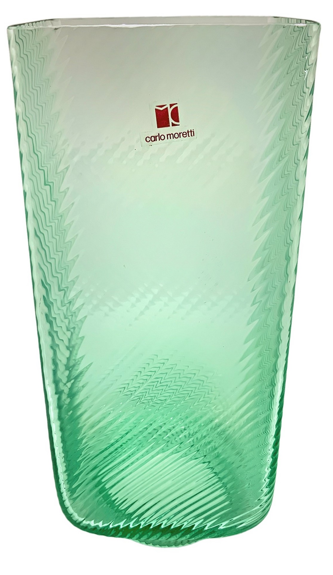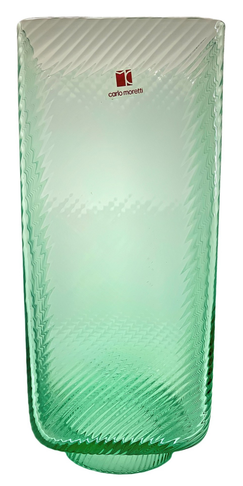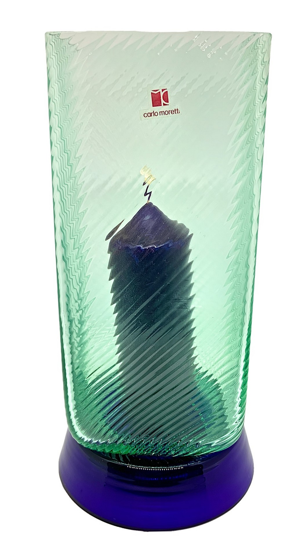 Portacandela produzione Carlo Moretti e base circolare H cm 28. Diametro cm 14 in vetro blu e diffu