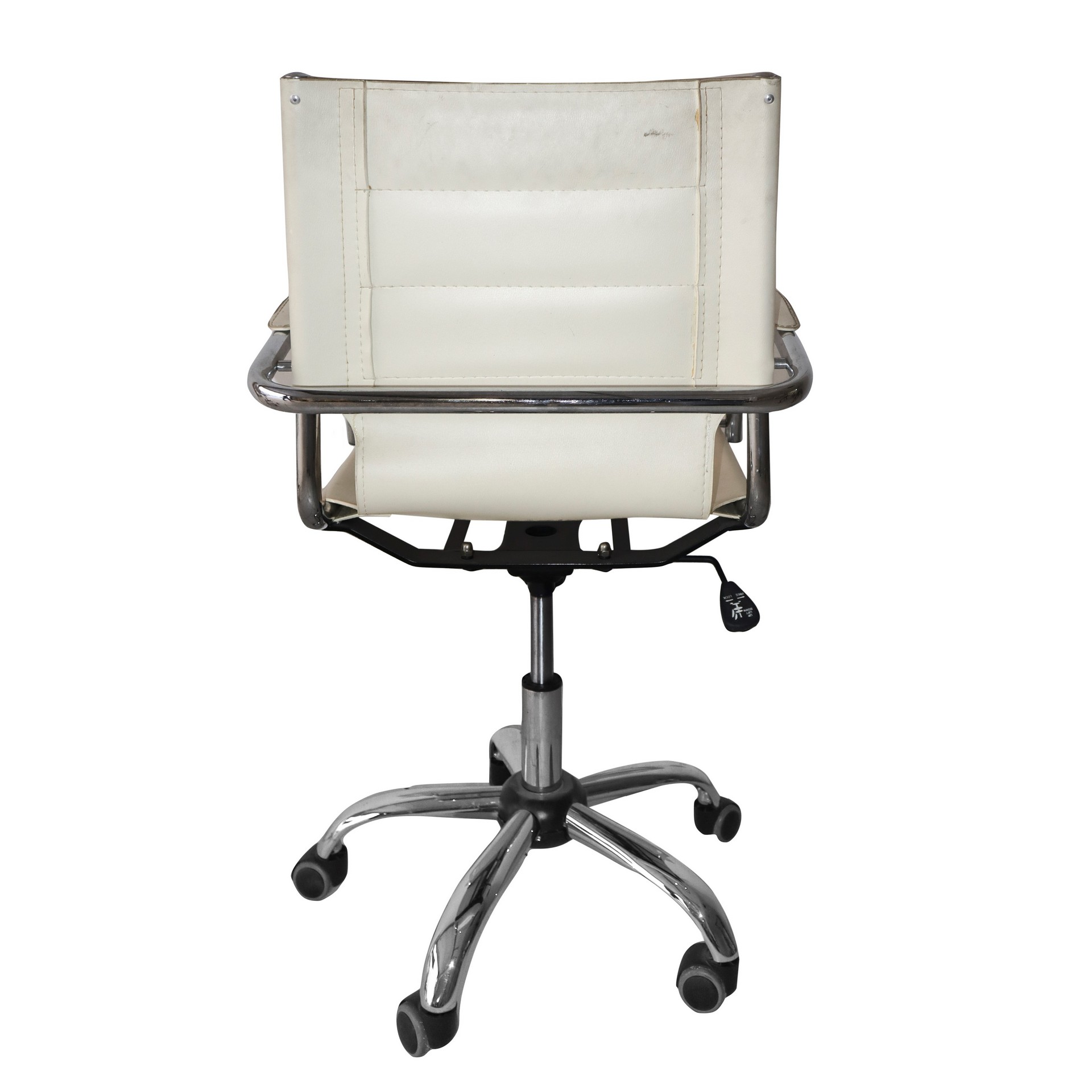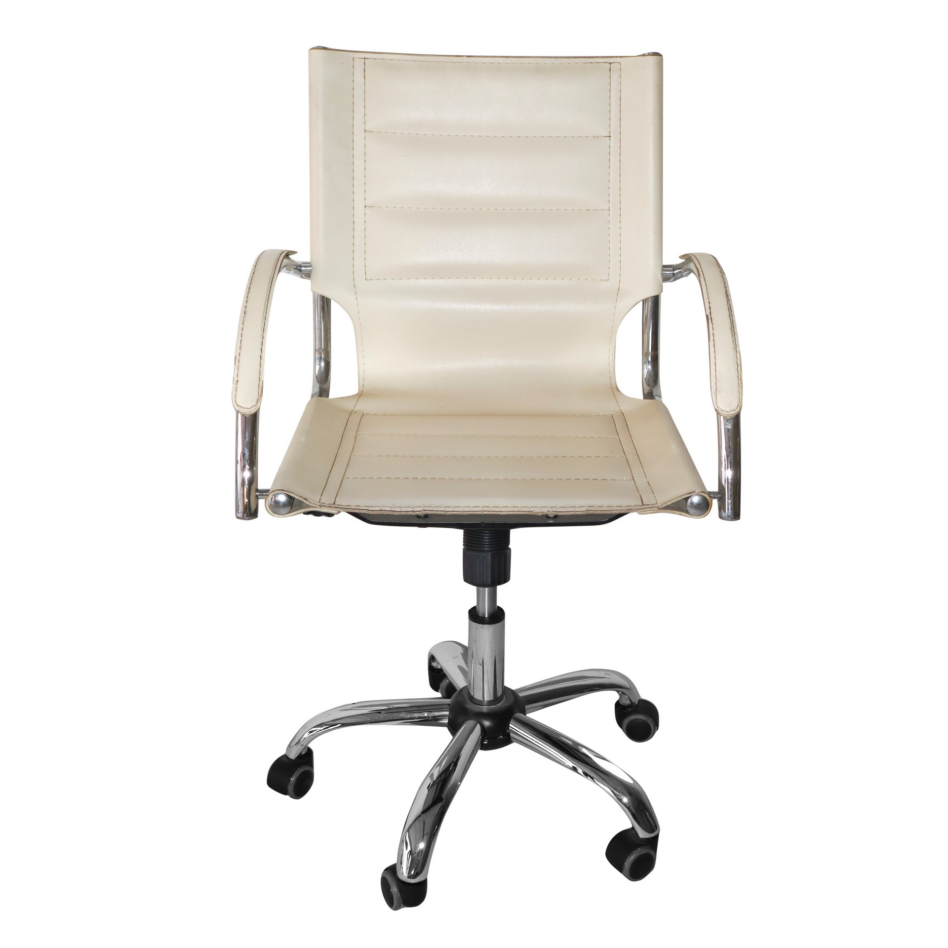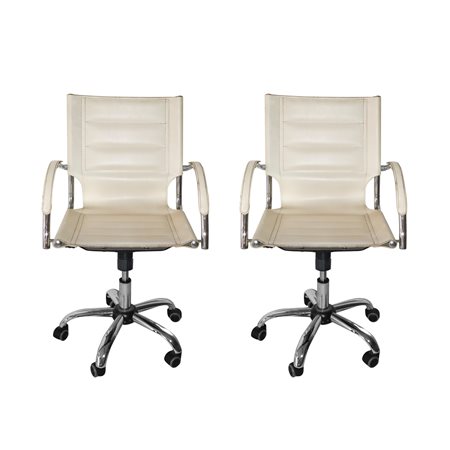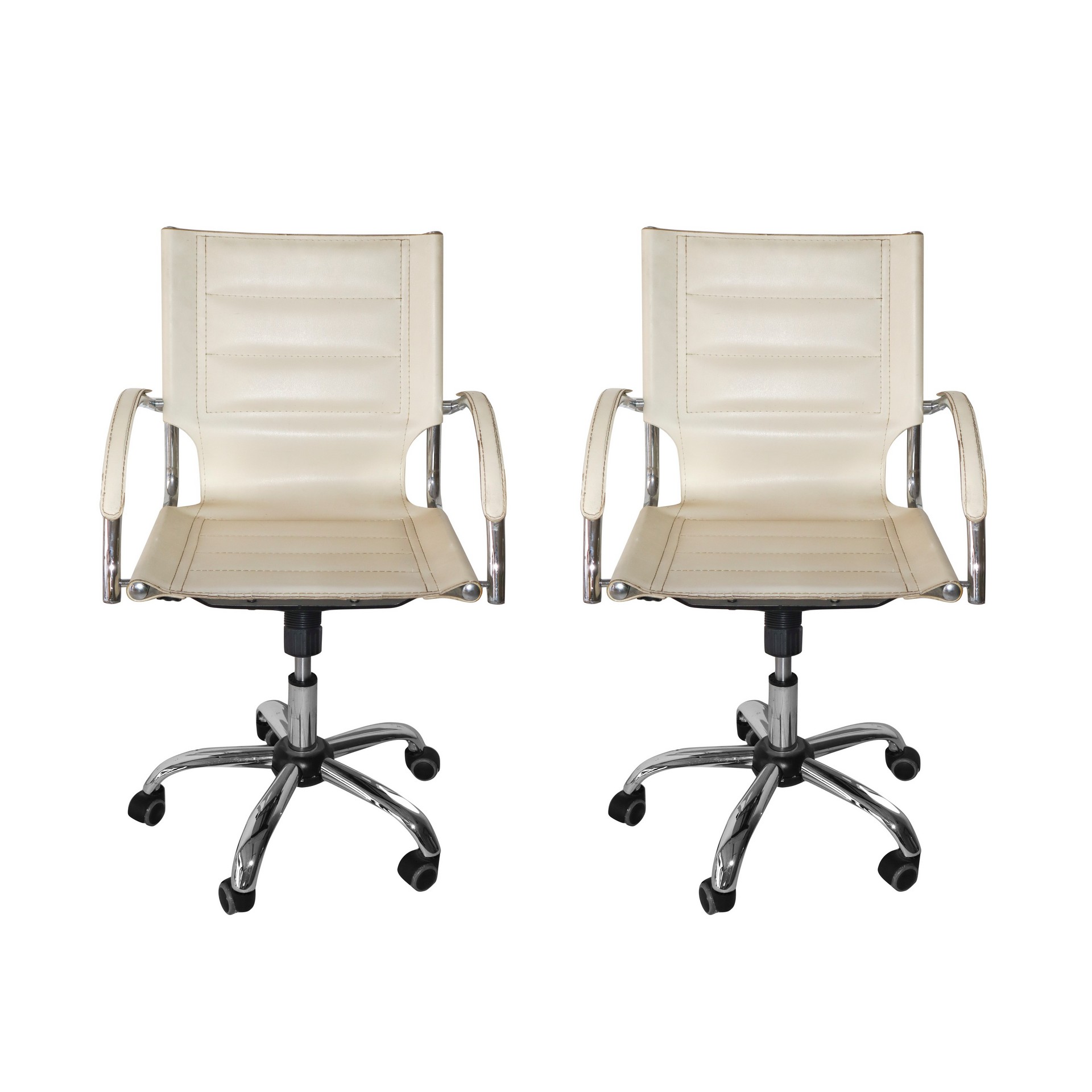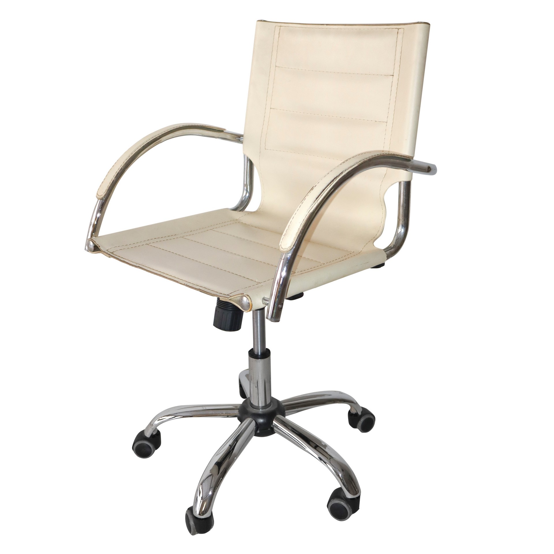 N° 2 poltrone pelle bianca, 70's h cm 96 x 57 Piede a 5 razze cromate con ruote.Piede a 5 razze cro