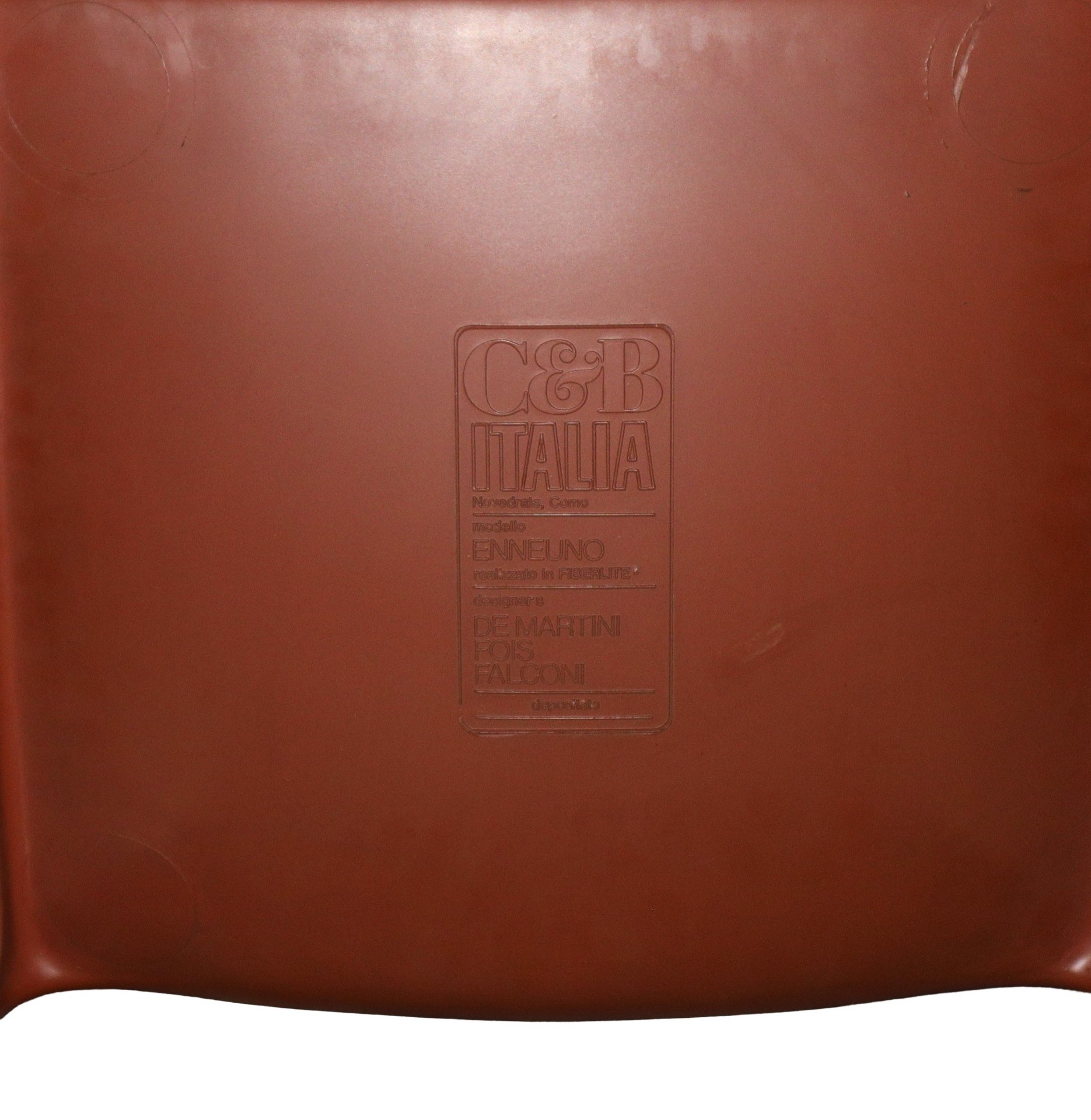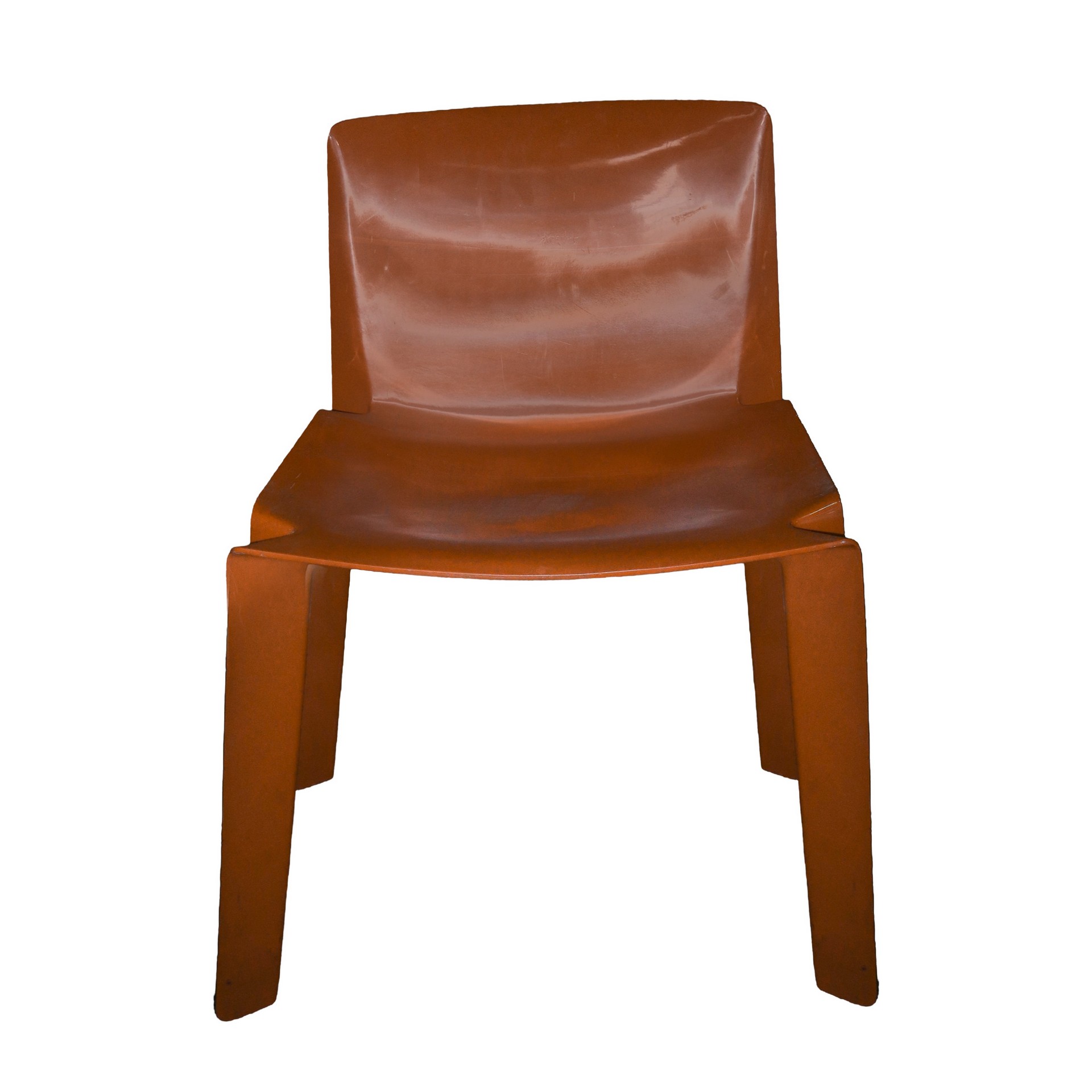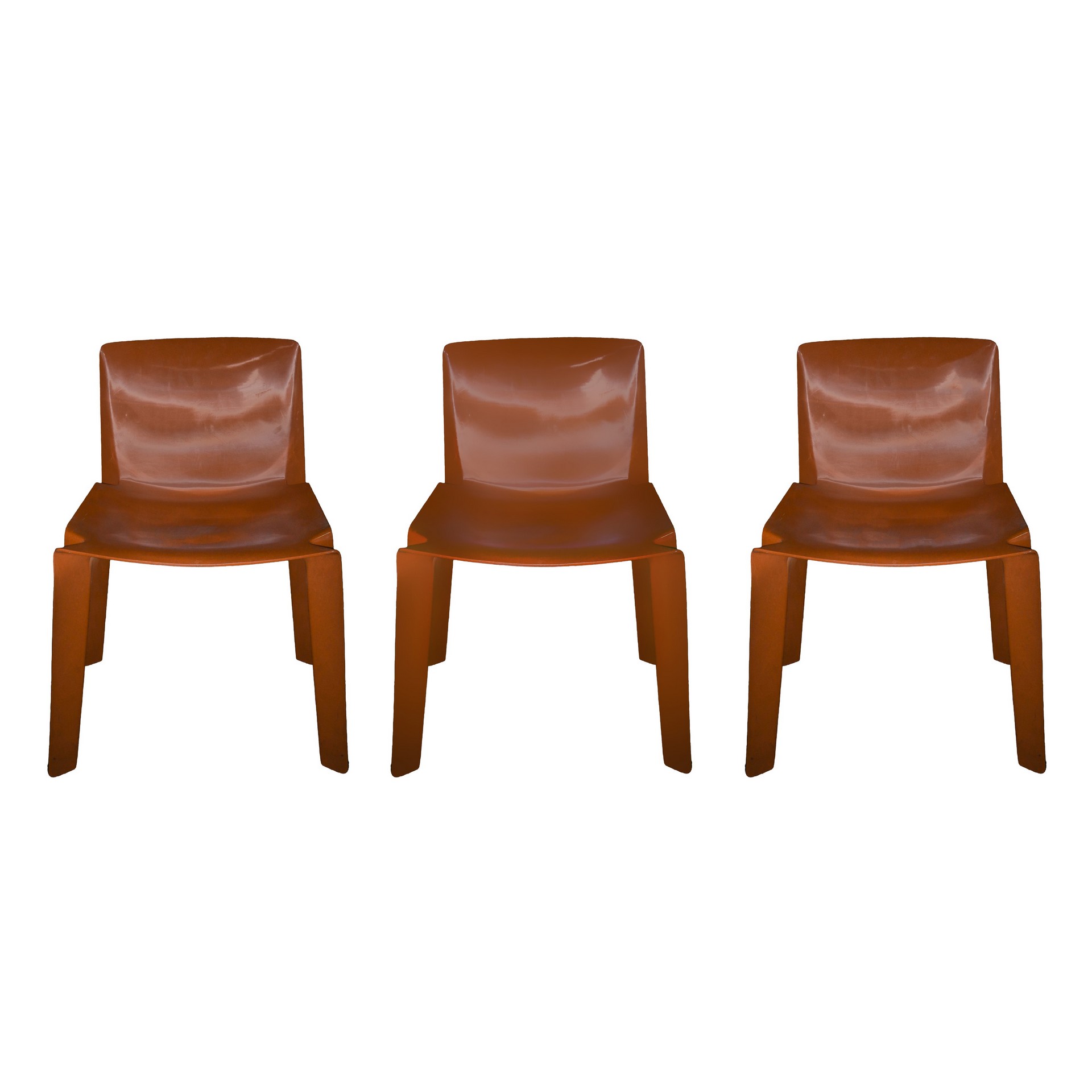Tre sedie impilabili in policarbonato stabilizzato colorate rosse, prod. Italia