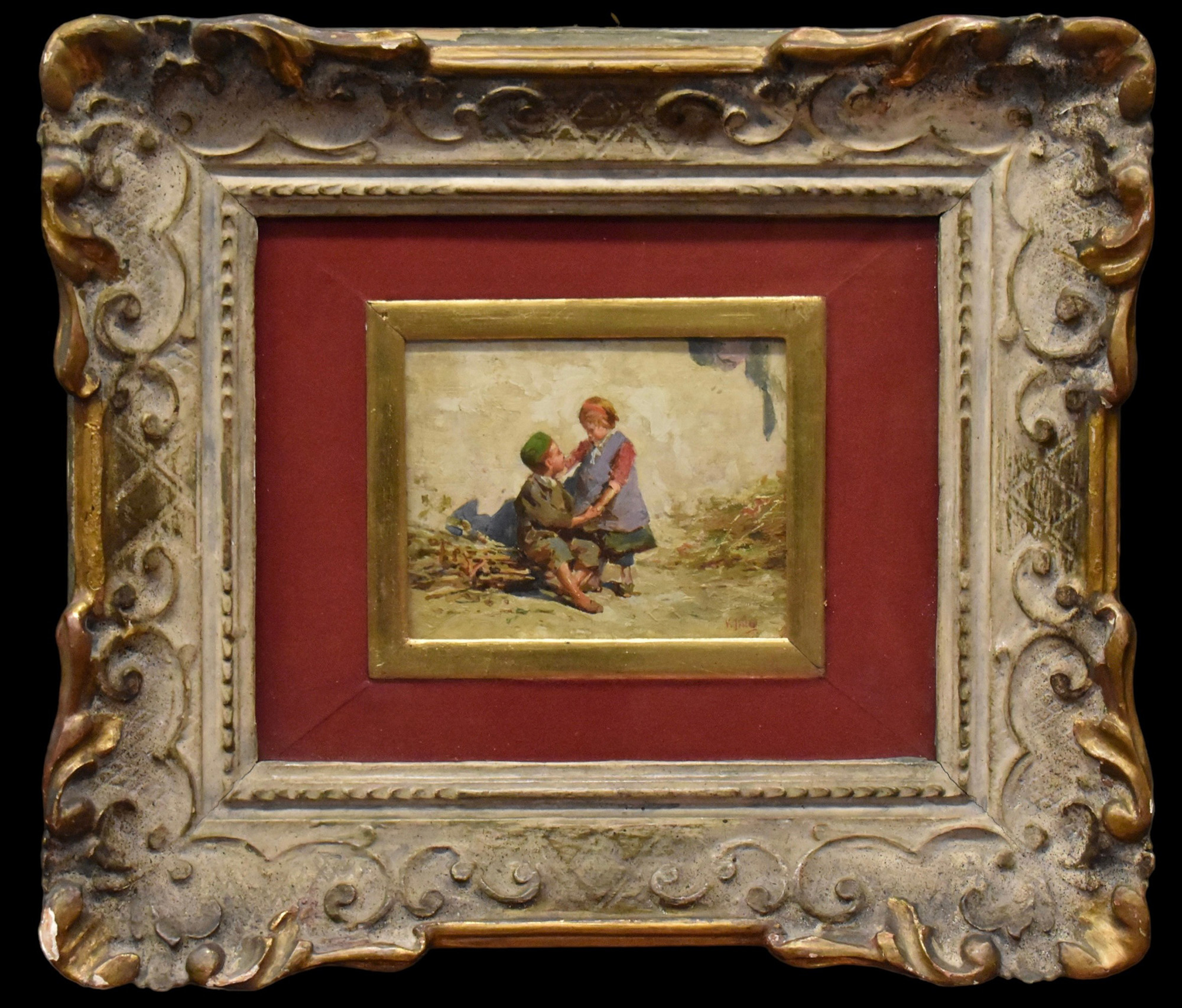 Vincenzo Irolli (1860-1942) 'Bimbi' olio su tavola firmato in basso a destra: V. Irolli