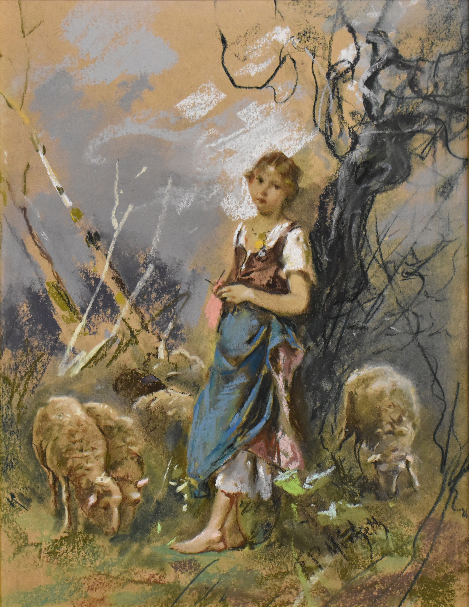 Francesco Paolo Michetti (1851-1929) 'Contadina con pecore' tecnica mista