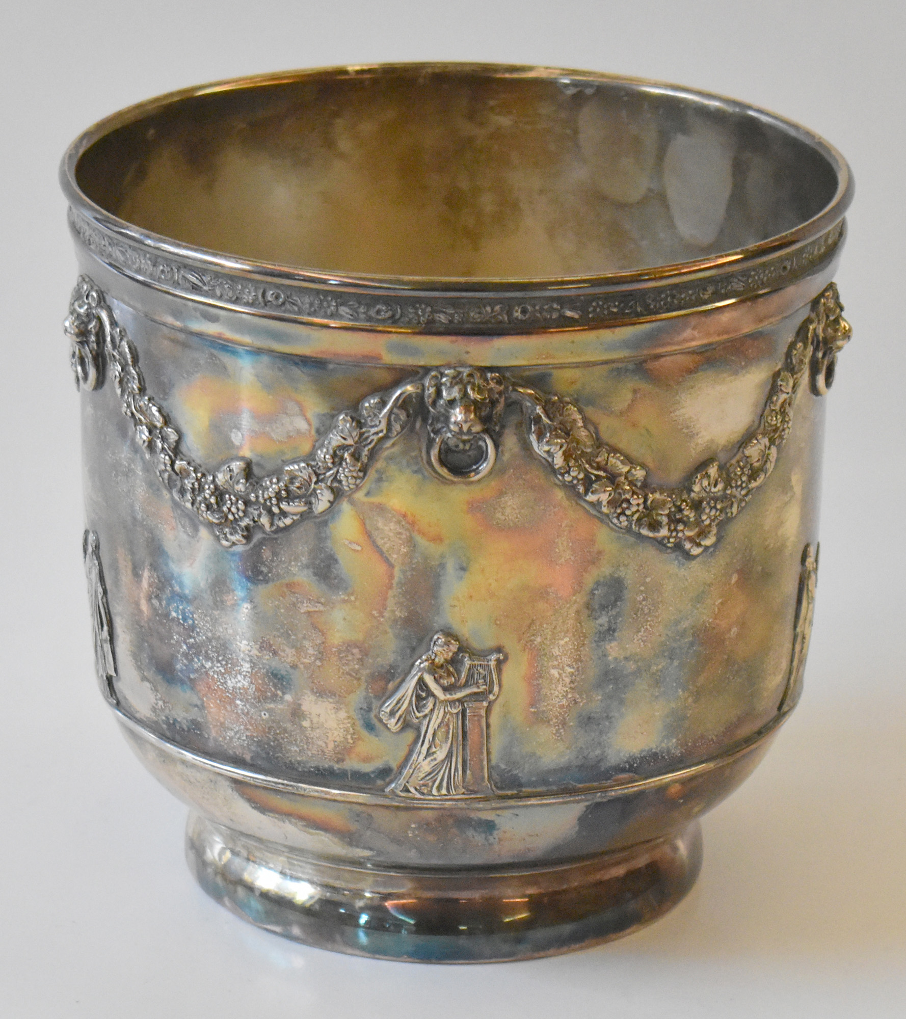 Secchiello portabottiglia in argento punzone 800 h 18 cm gr.1260