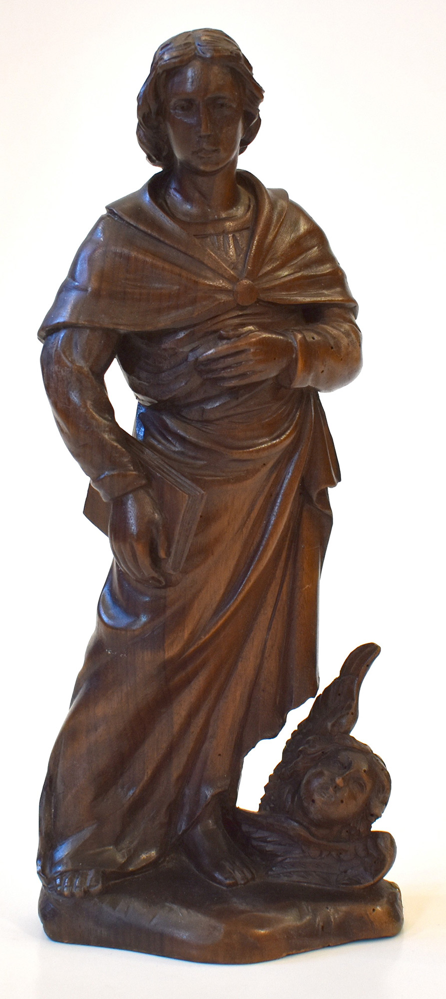scultura in legno raff.Santo con libro fine sec.XVIII
