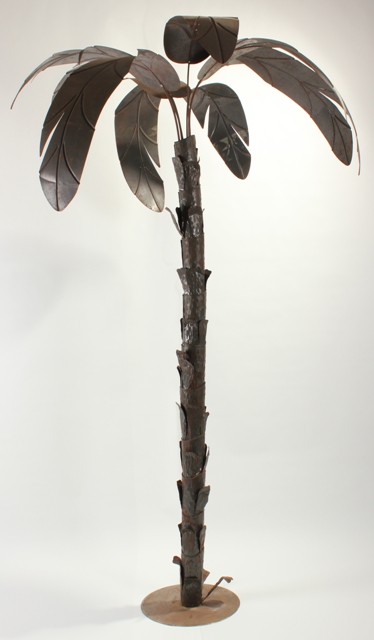 MARIO SCHIFANO Homs 1934 - Roma 1998 Costruzione per oasi, 1970 Scultura in lamiera, h. cm. 210 Firma sulla base Presenza di ruggine sparsa Di questa palma sono stati eseguiti 100 esemplari di cui solo quindici noti; dalla scritta sulla base questo risulta essere ex. 57/100, ma da considerarsi opera unica per l'intervento di risagomatura delle foglie. Esposizioni “Mostra del ricordo - Sabbie mobili”, Auditorium di Mecenate, Roma 2011 Autentica su foto Archivio Mario Schifano