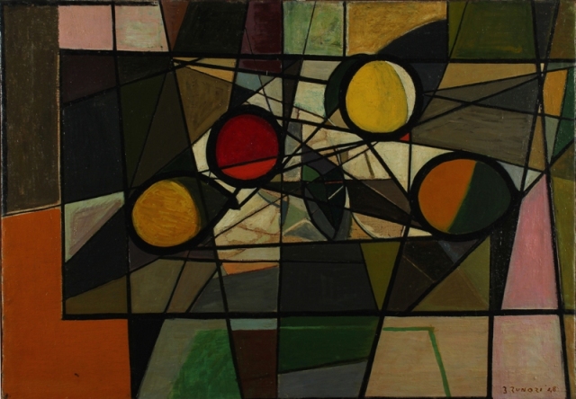 ENZO BRUNORI Perugia 1924 - Roma 1993 Tavolo con frutta in astratto, 1948 Olio su tela, cm. 73 x 102 Firma e data in basso a destra Provenienza Collezione privata, Roma Esposizioni Enzo Brunori. Galleria Il Pincio, Roma 1951 Enzo Brunori. Mostra Antologica. Palazzo della Podestà, Faenza, 1988. Catalogo mostra p.69 E. Brunori.Massimo Duranti a cura di. Palazzo Comunale Sala Sant'Antico Mulino, Corciano - Perugia.2010. catalogo mostra p.20 Pubblicazioni, E. Brunori. Cesare Vivaldi a cura di. Roma 1972 E. Brunori, Un pittore un poeta e un uomo d'azione e di vita.Gioni di Davide Lajolo, n.26, anno anno VII, P.41, Milano 1977 Bianca Pedace Vittoria Lippi e l'ambiente artistico umbro a metà novecento, p.4-6 Siena 2010 E. Brunori Catalogo Generale delle Opere. Enrico Crispolti a cura di. Ed. Egaf 2006