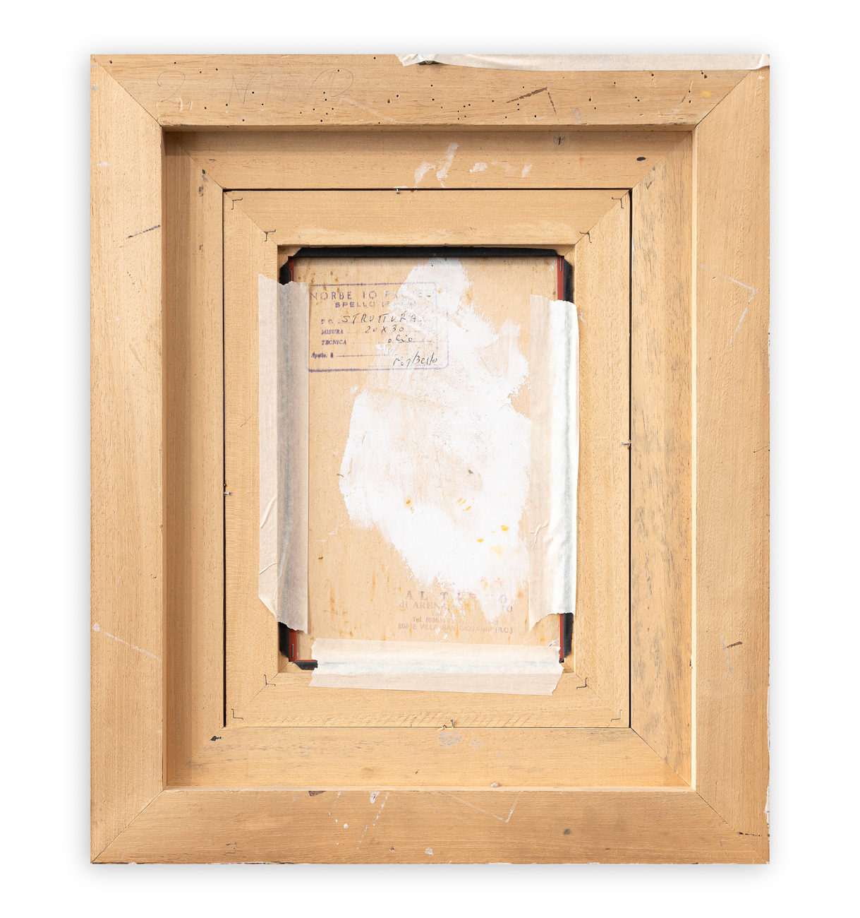 Timbro dell'Artista con firma, titolo, tecnica e misure al retro
