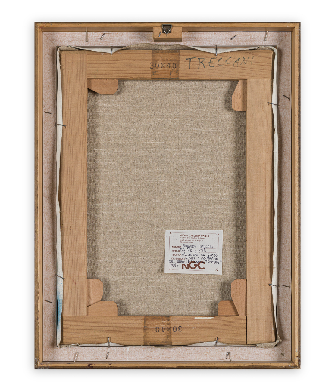 Etichetta della Galleria Nuova Carini (MI) al retro
