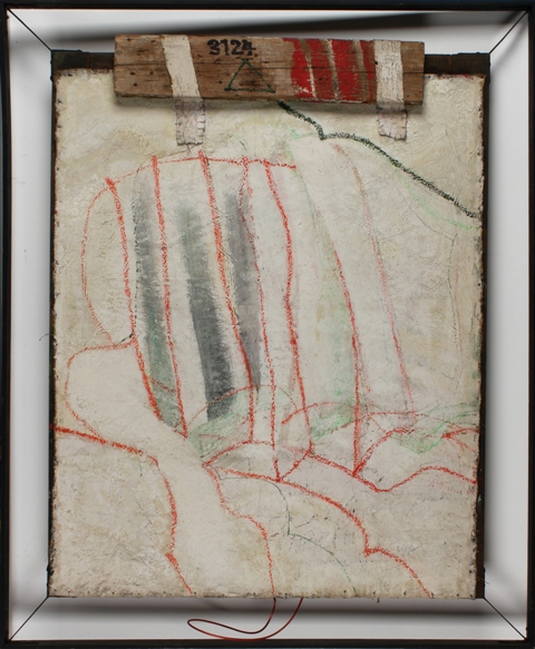 GERHARD HOEHME Greppin bei Dessau 1920 - Neuss-Selikum 1989 Informale 3124, 1964 Opera double face a tecnica mista di olio su tela, con applicazioni di legno ei fili, sospesa da un telaio a giono , cm. 127 x 103 Firma e data in basso a destra Provenienza Archivio Prof. Enrico Crispolti, Roma