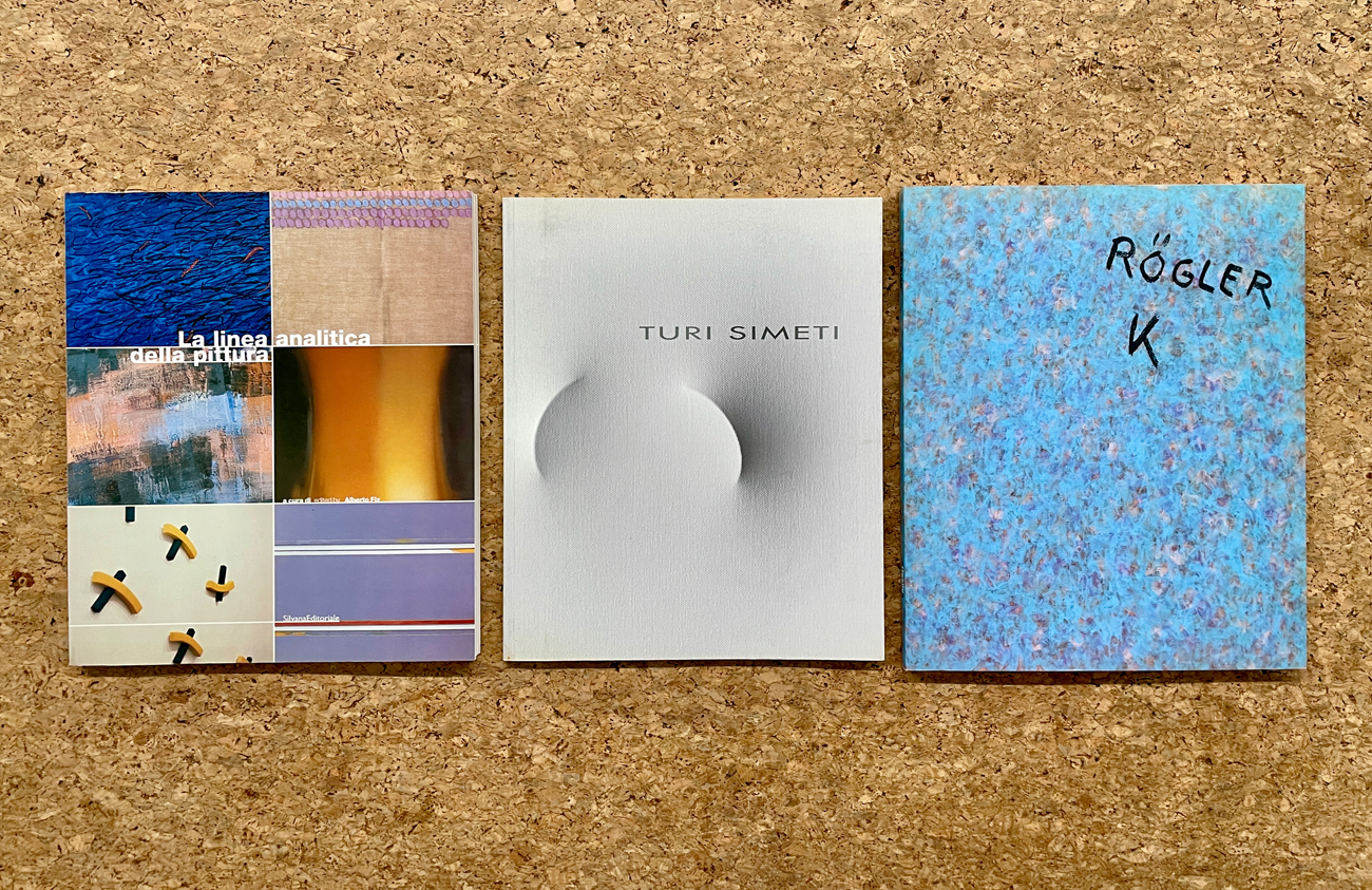 Catalogo a cura di Alberto Fiz con opere di Marco Gastini, Giorgio Griffa, Claudio Olivieri, Carmengloria Morales, Pino Pinelli, Claudio Verna. Brossura con alette, pagine 120