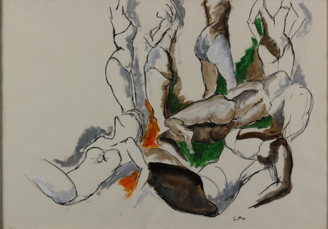 RENATO GUTTUSO Bagheria 1912 - Roma 1987 Nudi in body, 1973 Tempera e china cartoncino, cm. 51 x 75 Firma in basso a destra Esposizioni Guttuso. Disegni Anni trenta anni ottanta. Francesco Gallo a cura di. Galleria d'Arte Moderna Paternò 1992 Catalogo mostra Ed. Fabbri, p.168 Autentica su foto dell'Artista Autentica su foto Archivi Guttuso