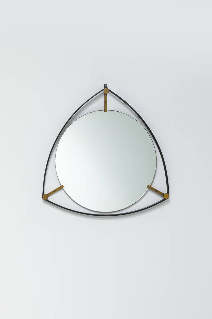 Struttura in metallo verniciato, vetro specchiato e particolari in ottone.