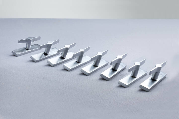 GIO PONTI<BR>Milano 1891 - 1979<BR>Otto maniglie da finestra mod. Lama