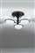Struttura in metallo verniciato e tre sfere in vetro satinato.