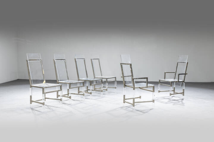 Lotto di due poltroncine e quattro sedie mod. Metric Line