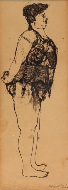 RENZO VESPIGNANI Roma 1924 - 2001 Figura di donna di profilo, 1945 China su carta cm. 34 x 12 Firma e data in basso a destra Autentica su foto Archivio Scuola Romana