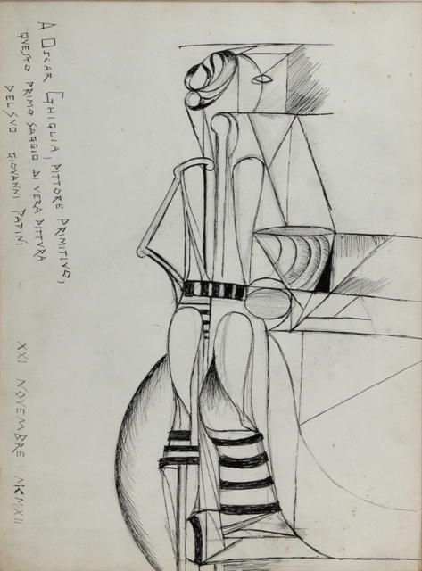 GIOVANNI PATINI Firenze 1881 - 1956 Vera pittura, 1912 China su carta, cm. 33 x 24 Firma, data e dedica lungo il bordo sinistro Pubblicazioni Oscar Ghiglia e il suo tempo. Paolo Stefanini a cura di.. Ed. Vallecchi, p. 103 "A. Oscar Ghiglia, pittore primitivo, Questo primo saggio di vera pittura del suo Giovanni Papini, XXI Novembre 1912"