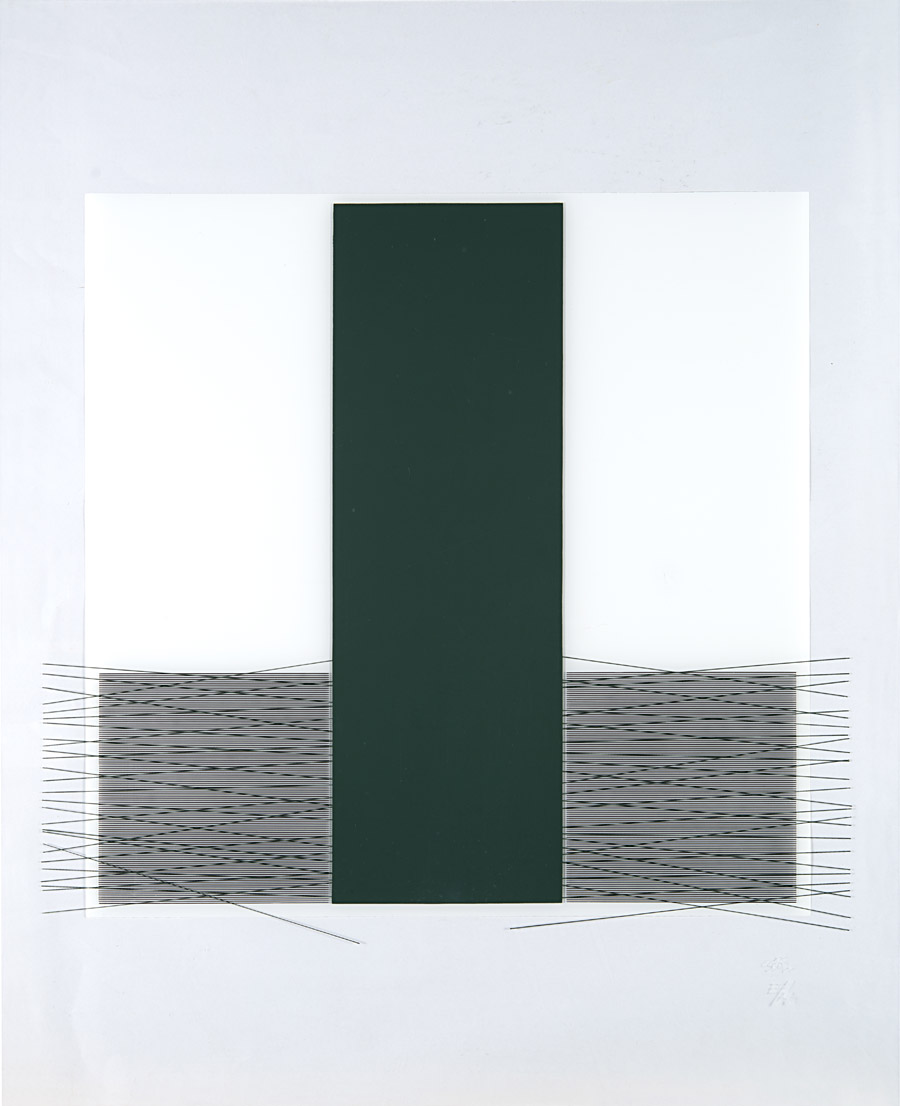 Jesus Rafael Soto , Bolivar 1923 , Parigi 2005 "Composicion en verde y blanco (from the Jay-Alai series)" 1969 serigrafia su plexiglass, cm 61,5x47,6 Firmata e numerata E/A in basso a destra