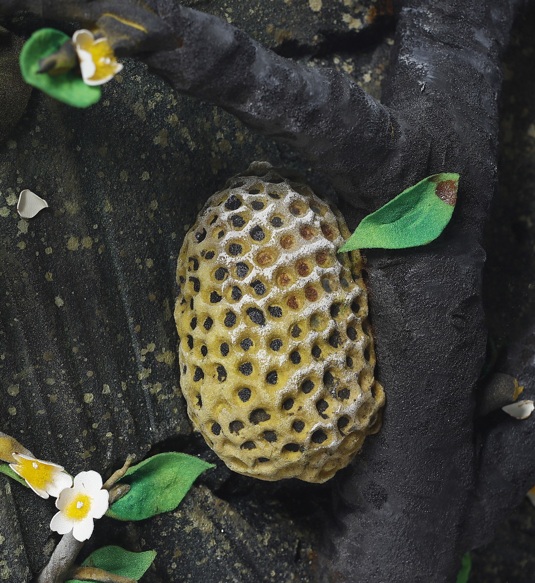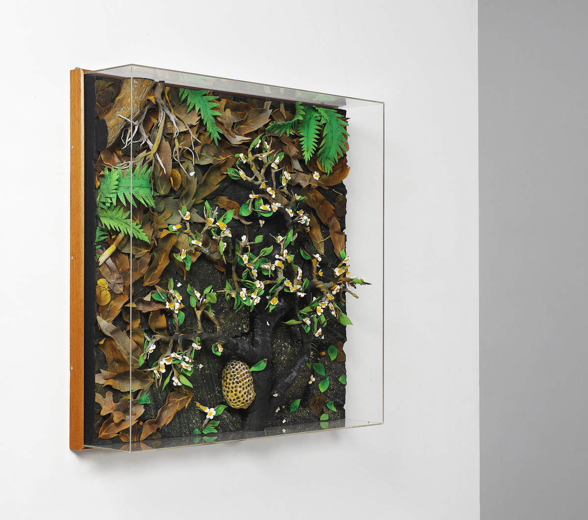 GILARDI PIERO (1942 - 2023) MELO SELVATICO, 1992. poliuretano espanso dipinto, entro teca di plexiglass. Cm 99,50 x 100,00 x 10,00. sul retro: firma, data e titolo