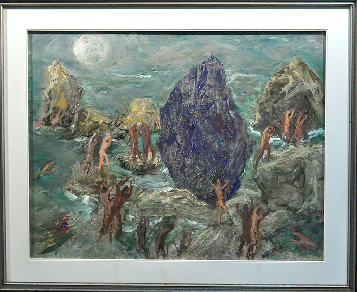 Girosi Franco (Napoli 1896 - 1987) Bagnanti tecnica mista su tavola, cm 70x90 firmato di lato a destra: Girosi