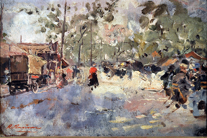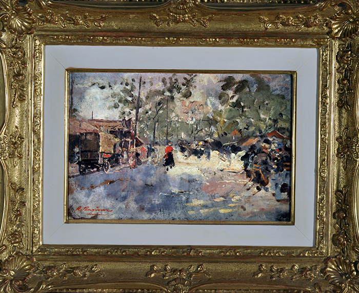 Ragione Raffaele (Napoli 1851 - 1925) Periferia parigina olio su cartone, cm 22x33 firmato in basso a sinistra: Ragione Bibliografia: P.L. Di Giacomo – D. Di Giacomo, Raffaele Ragione (1851- 1925) impressionista napoletano, Pescara 2007, tav. LXVI p. 118