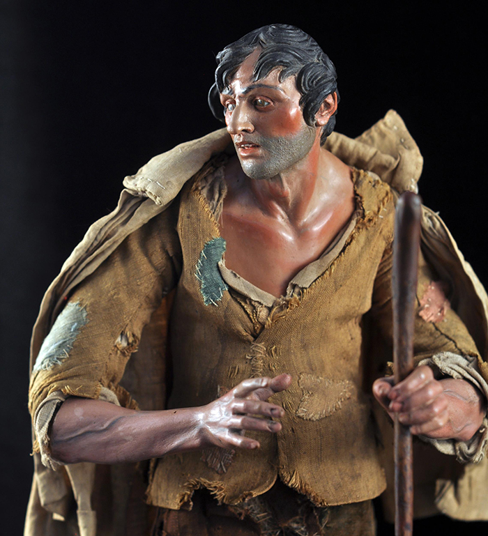 Mendicante attr. N. Somma h. cm 37,5 accessori: bastone Napoli XVIII-XIX secolo