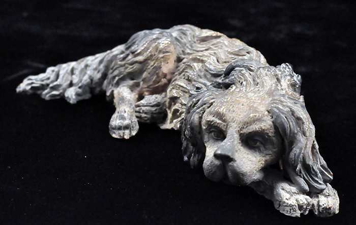 Cane accosciato in terracotta policroma cm 4x16 Napoli XVIII - XIX secolo
