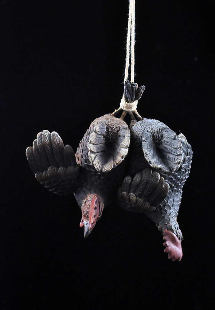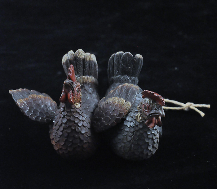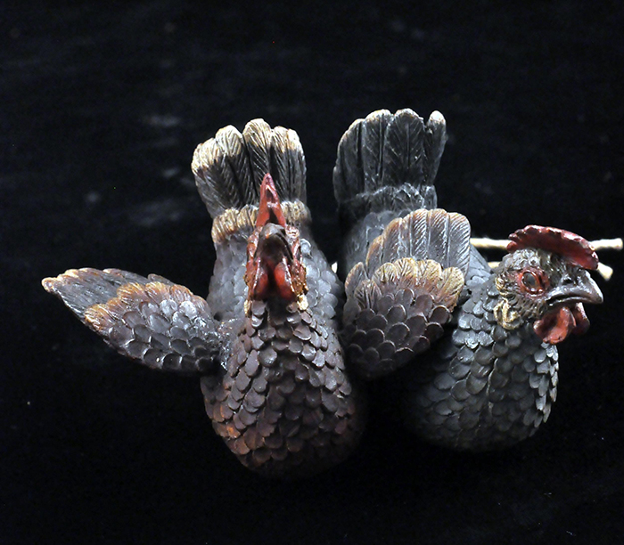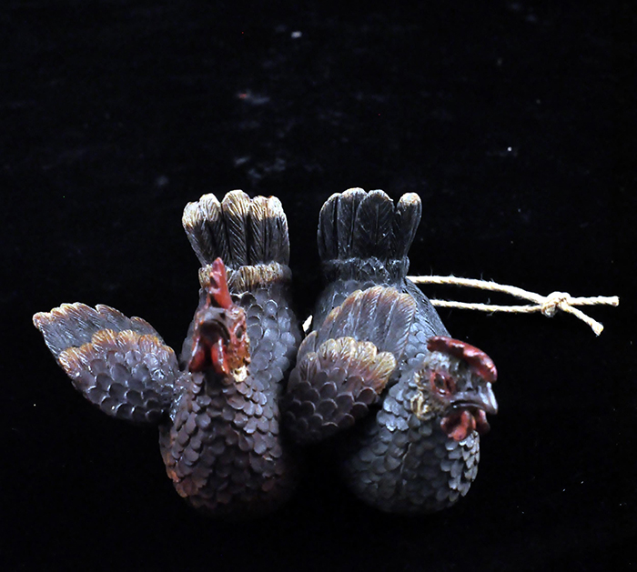 Coppia di galline in terracotta policroma cm 10x11 Napoli XVIII - XIX secolo