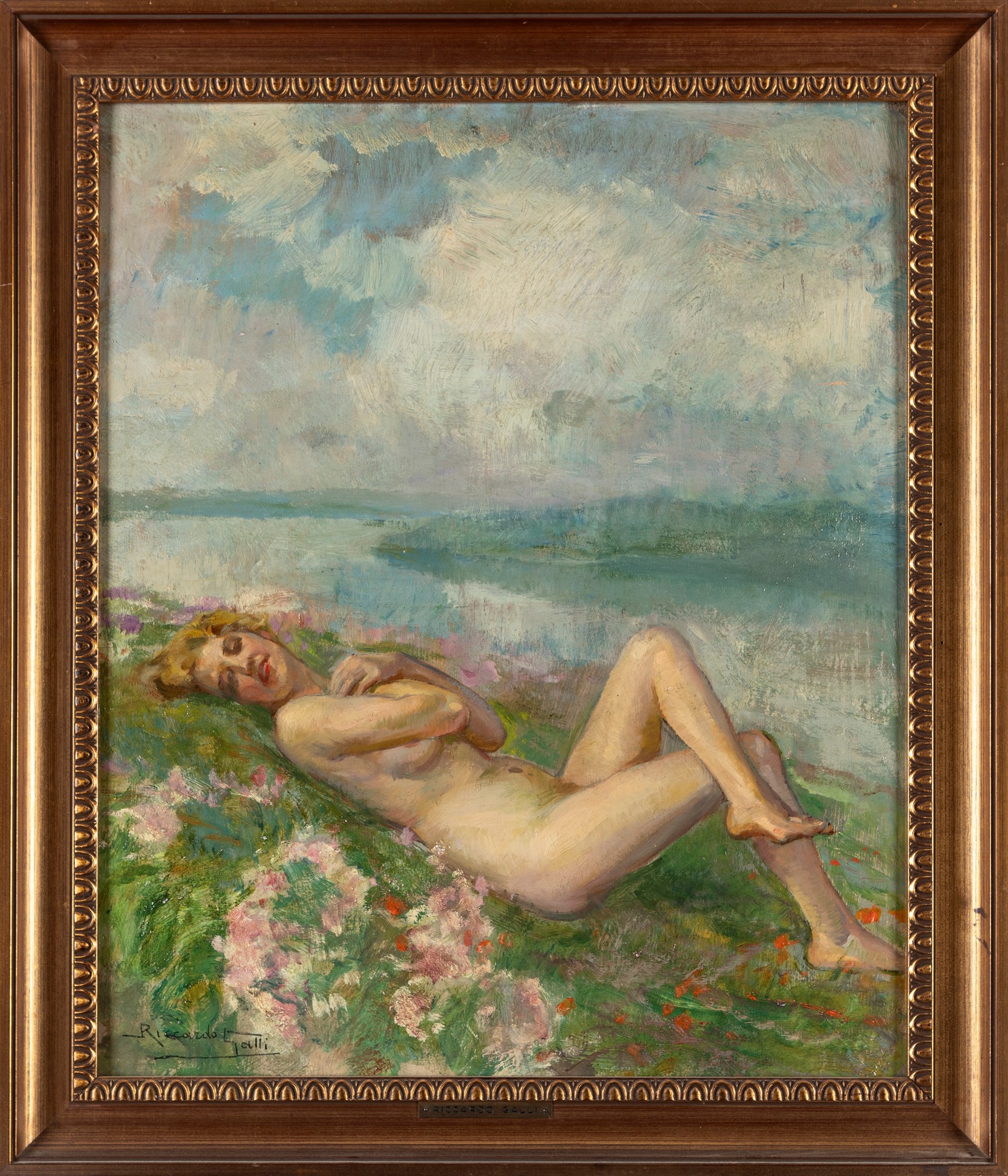 Riccardo Galli (Milano 1869-1944) - Sogno di primavera (Nudo femminile sul lago di Como)