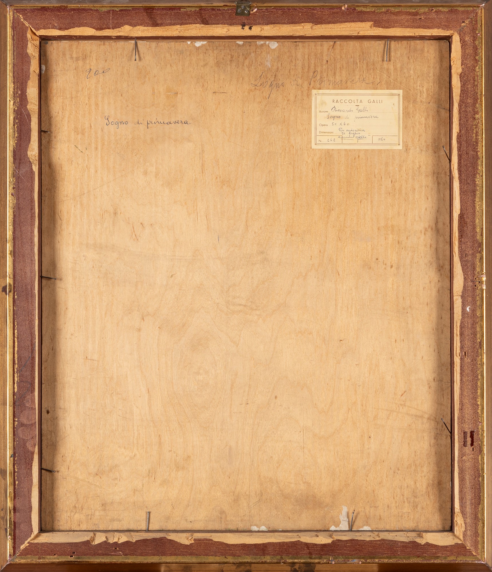 al retro, sul compensato, etichetta della Raccolta Galli con titolo e autentica del figlio
