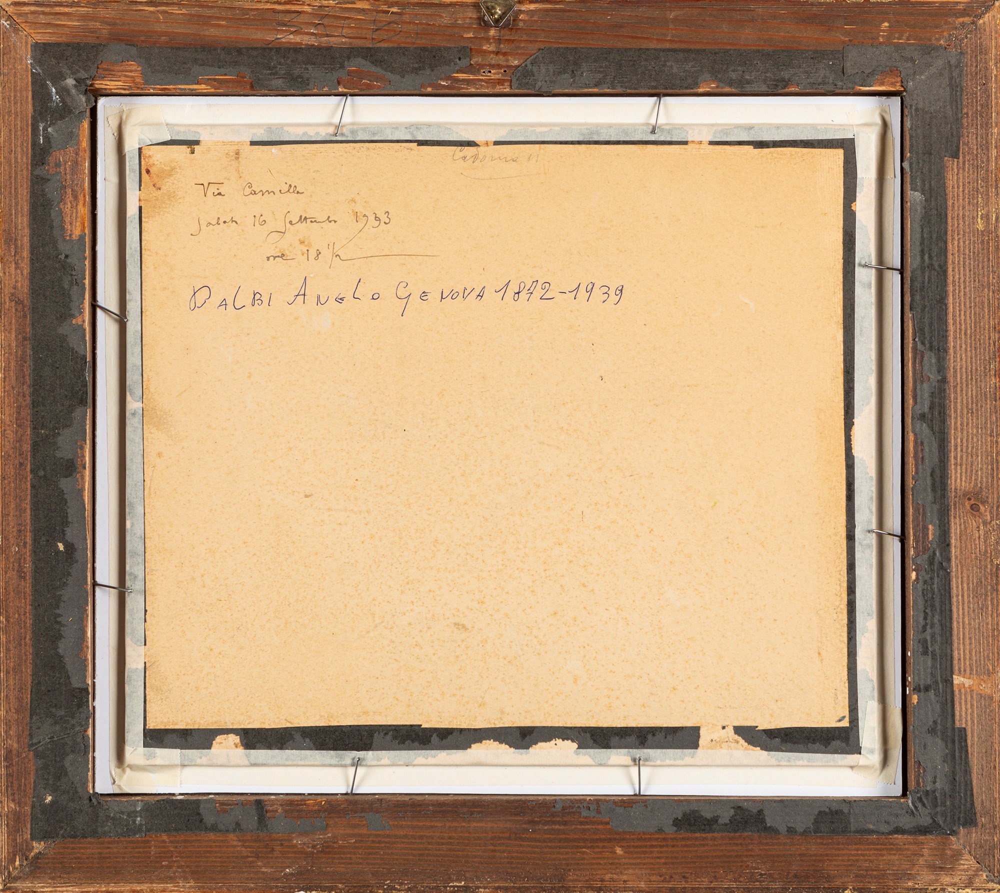 al retro, sul cartone, locato e datato: Via Camilla Sabato 16 settembre 1923 ore 18 1/2