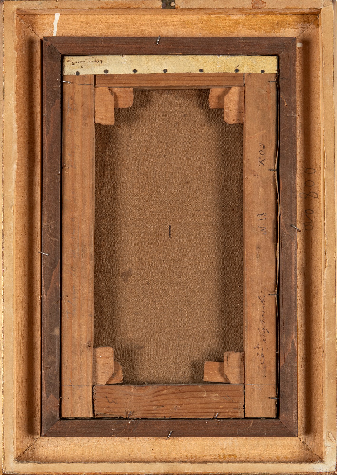 firmato in alto a destra sulla piega della tela: Edgardo Saporetti