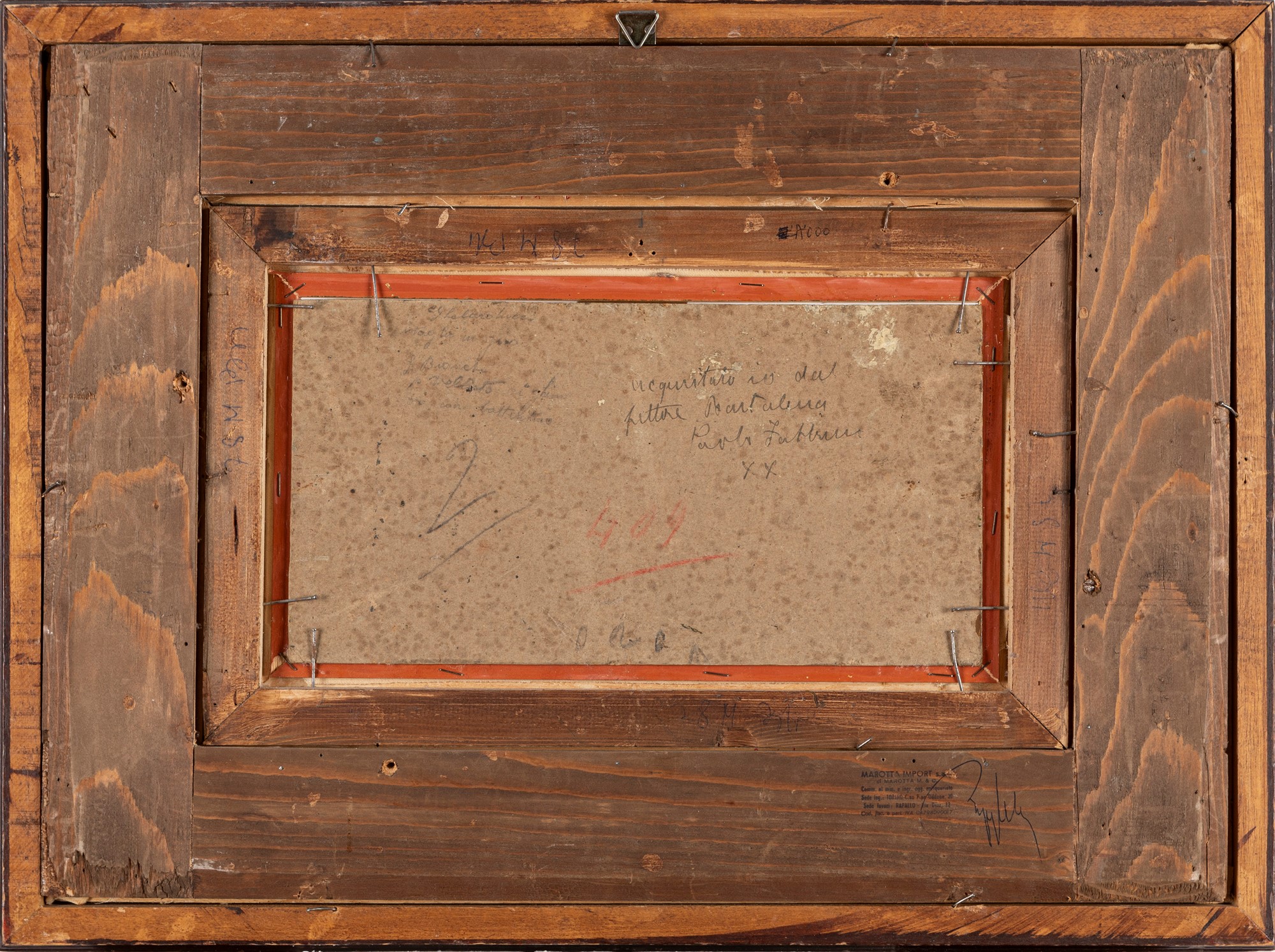 al retro, sul cartone, iscrizione per autentica; sul telaio, timbro della Galleria d'Arte Marotta di Rapallo