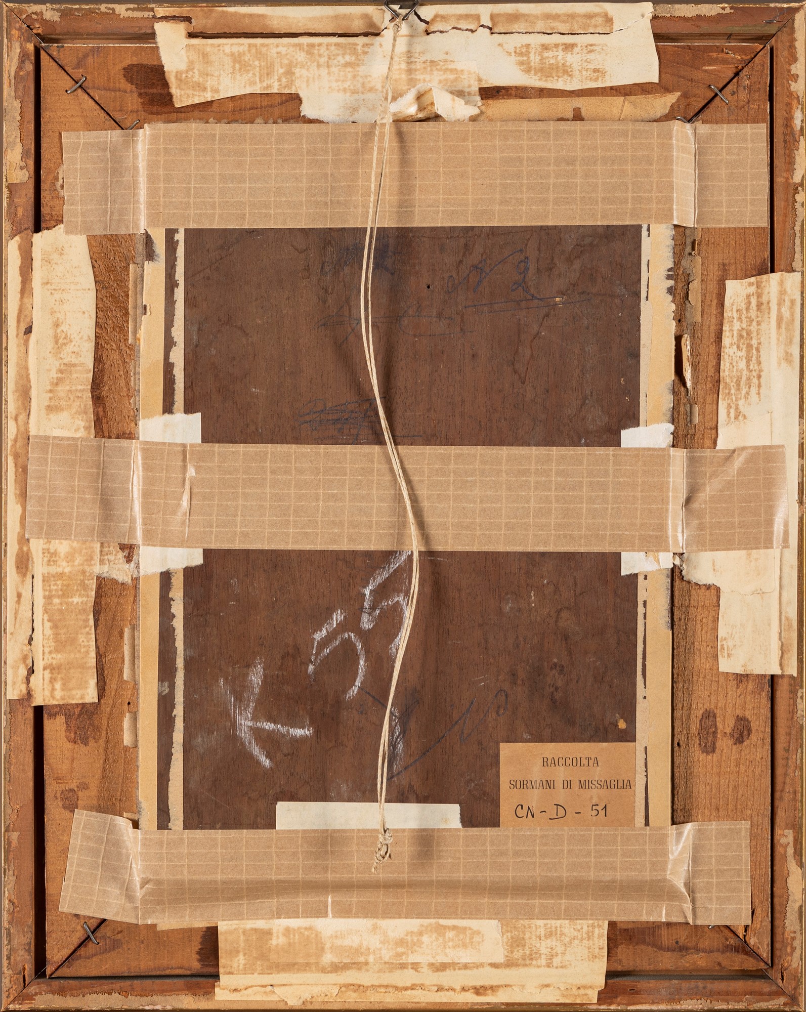 al retro, sulla tavola, etichetta relativa alla provenienza (Sormani di Missaglia)