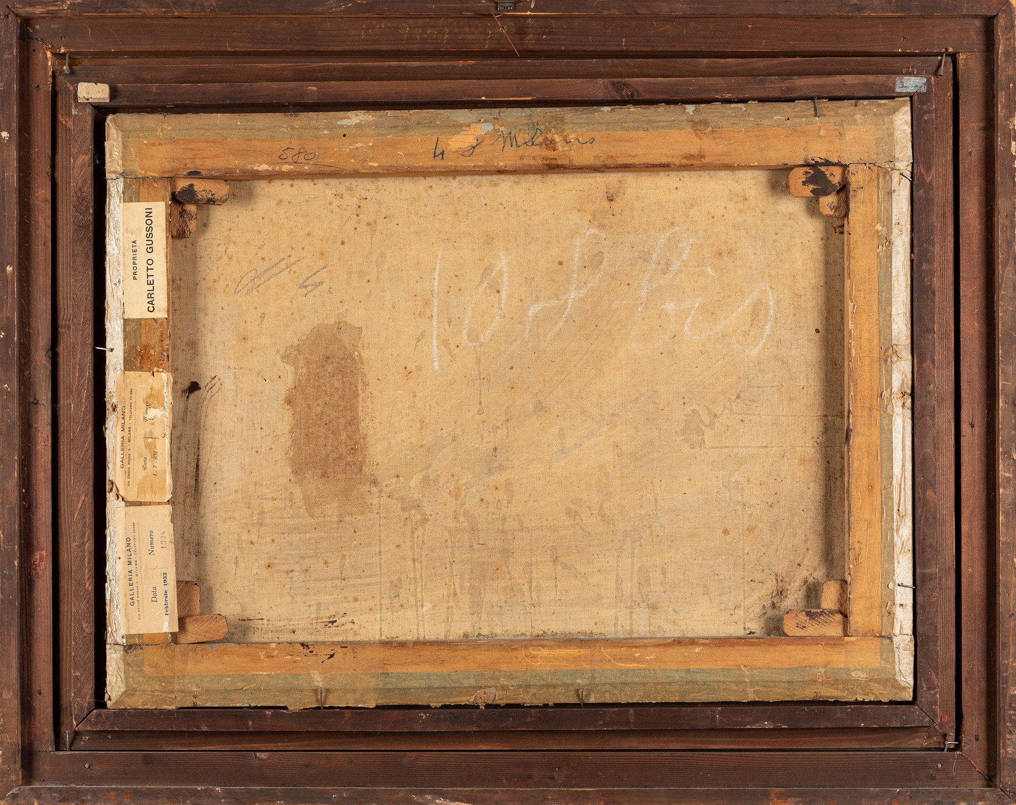 al retro, sul telaio, etichette della Galleria Milano (una delle quali autografata dal pittore) e della proprietà Carletto Gussoni