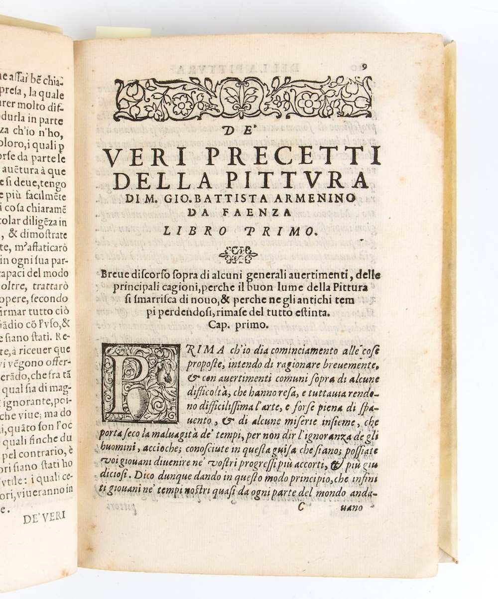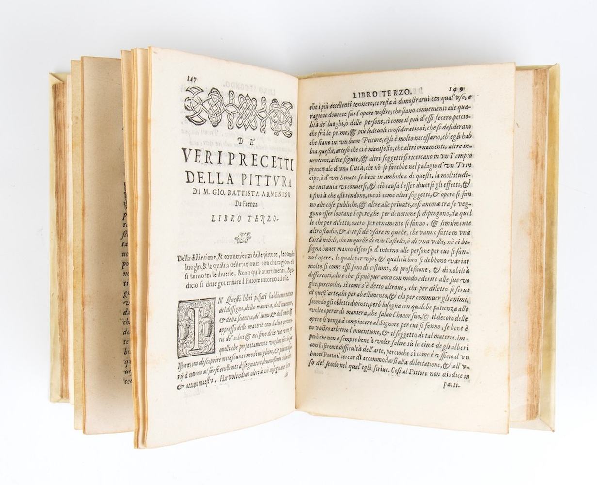 "Trattato pratico sul disegno e sulla tecnica pittorica, scritto dal pittore faentino. Armenini. Contiene aneddoti e altre notizie su artisti e opere d'arte. Importante per lo studio della pittura del Cinquecento". Una delle fonti più importanti per la conoscenza delle botteghe dell'artista del periodo manierista in Italia.