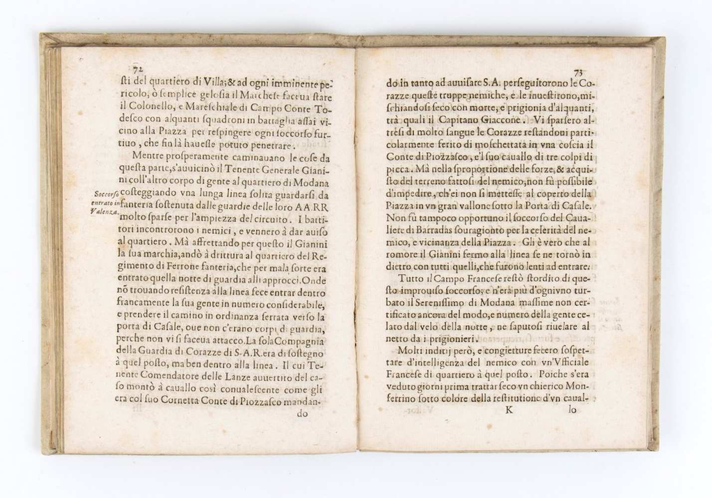 Opera rara e completa che descrive Valenza, città isolata, disperata e in crisi alimentare, che dovrà capitolare alle truppe di Francia, Savoia e Modena.