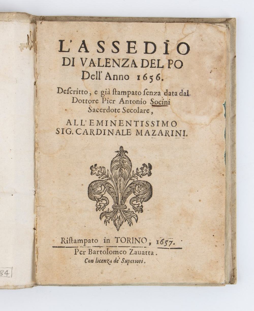 PIER ANTONIO SOCINI. L'ASSEDIO DI VALENZA DEL PO DELL'ANNO 1656. Torino 1657