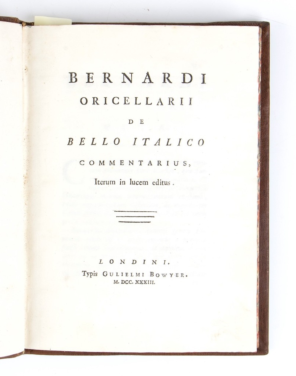 BERNARDO RUCELLAI. De bello italico, De bello pisano. Londra Bowyer 1733