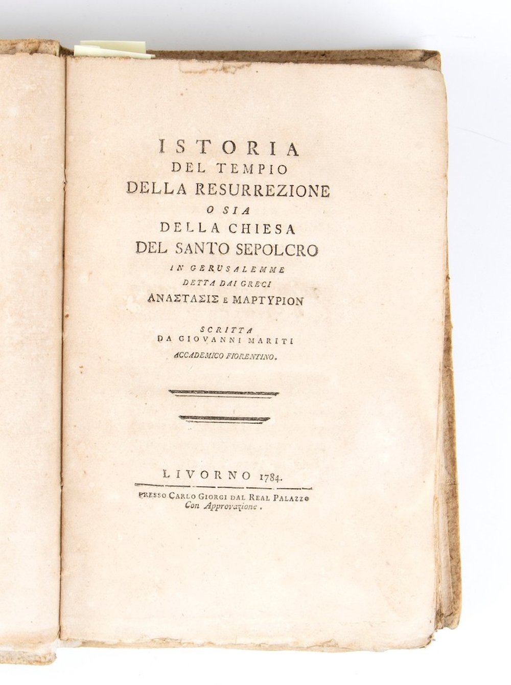 Lotto 95 | GIOVANNI MARITI. Istoria del tempio della resurrezione o sia della chiesa del santo sepolcro in Gerusalemme. Livorno 1784