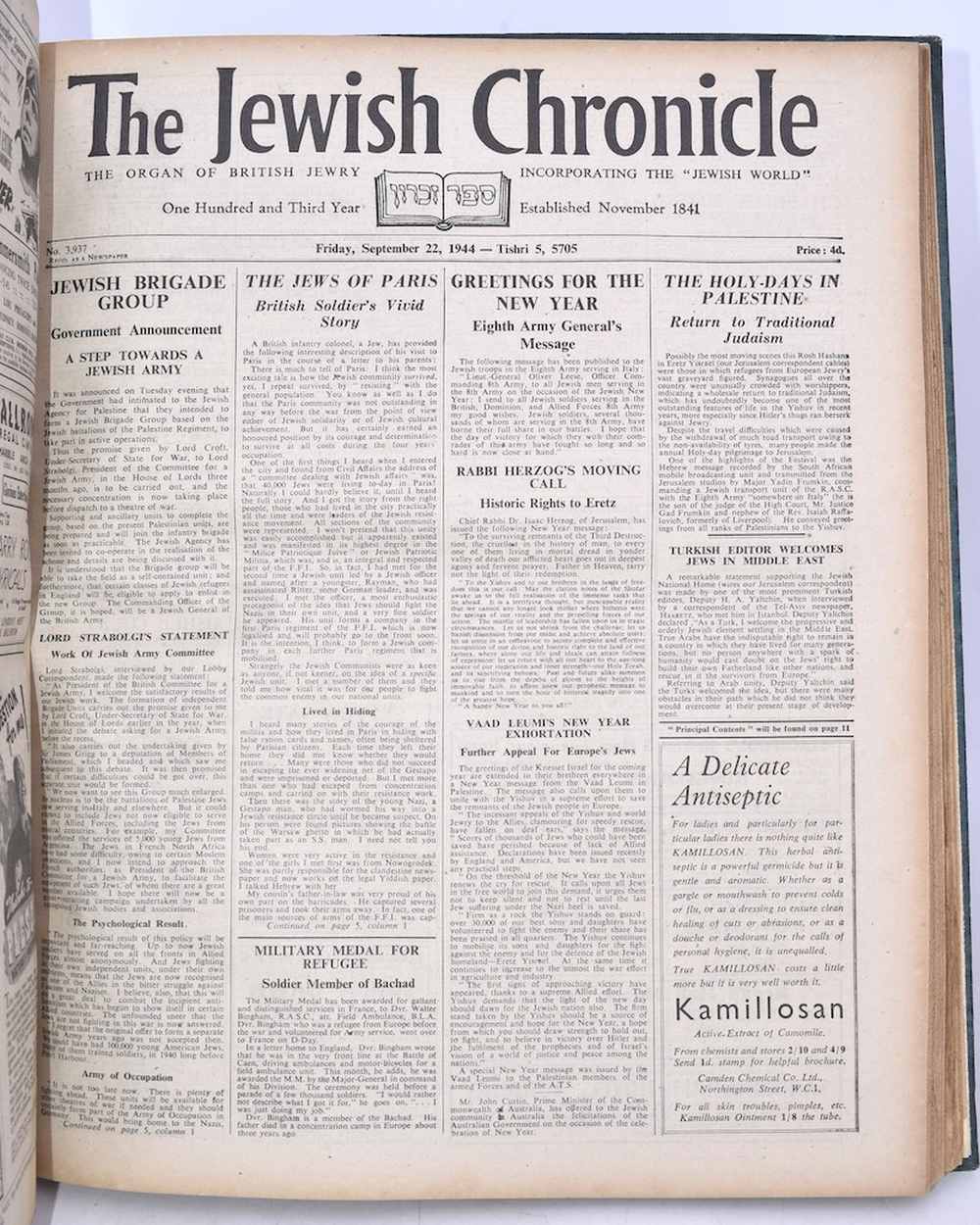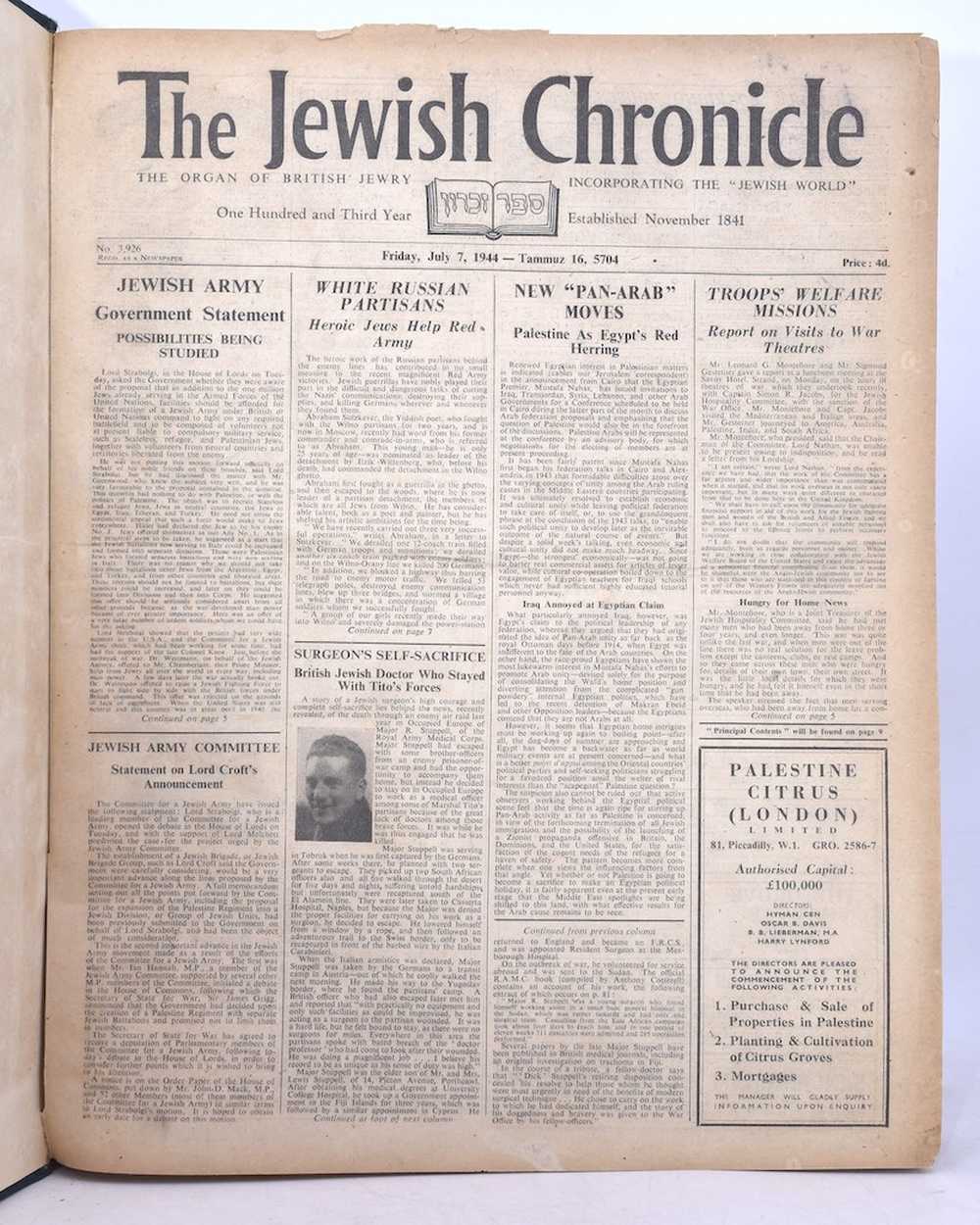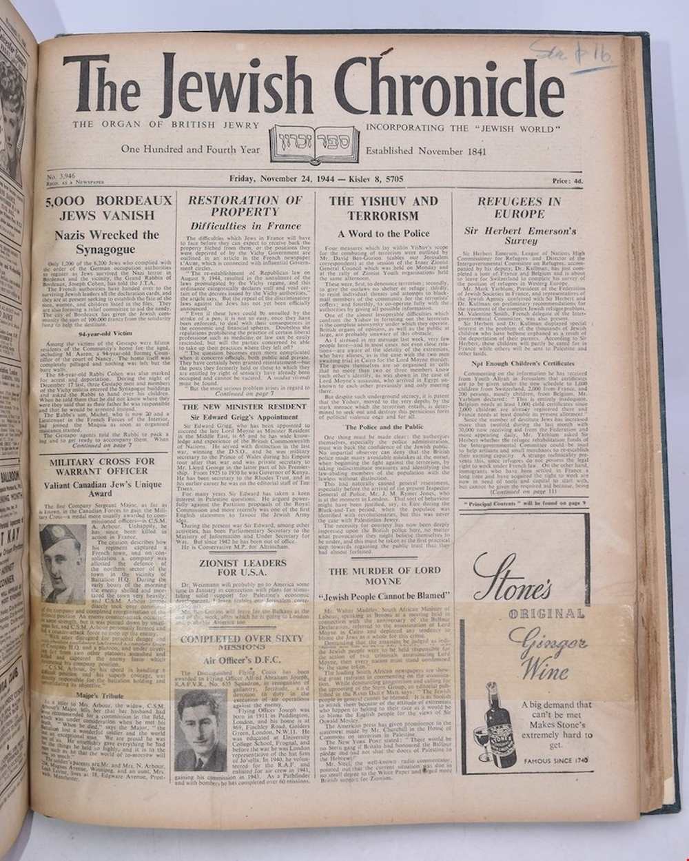 THE JEWISH CHRONICLE JULY – DEC 1944 The organ of British Jewry Incorporating The “Jewish World” Established November 1841