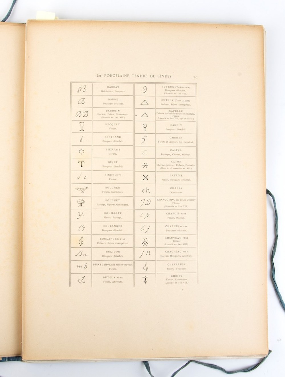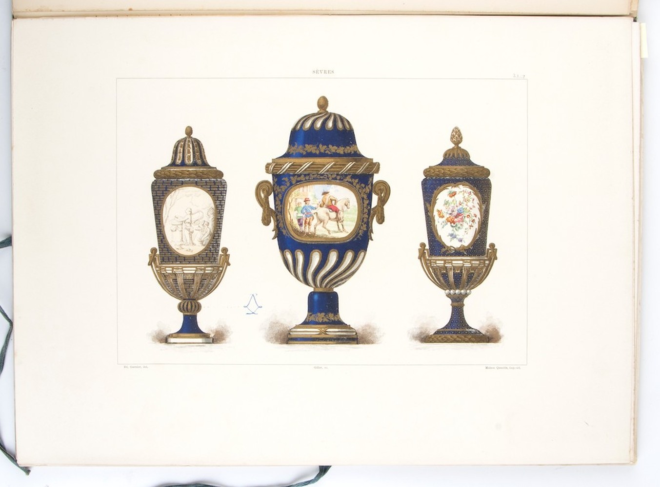 Garnier, Edouard. La porcelaine tendre de Sèvres : 50 planches reproduisant 250 motifs en aquarelle, d'après les originaux, avec une notice historique. Paris : Maison Quantin, [1891?]