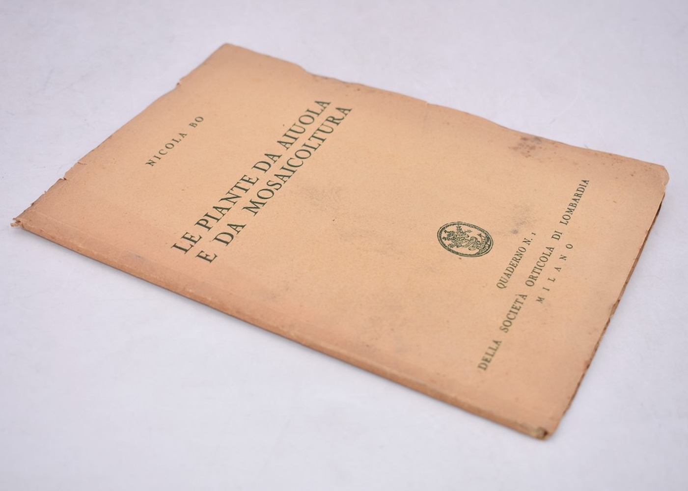Quaderno n. 1. Interessante pubblicazione degli Anni '30, guida pratica di giardinaggio con testo opportunamente stampato in verde.