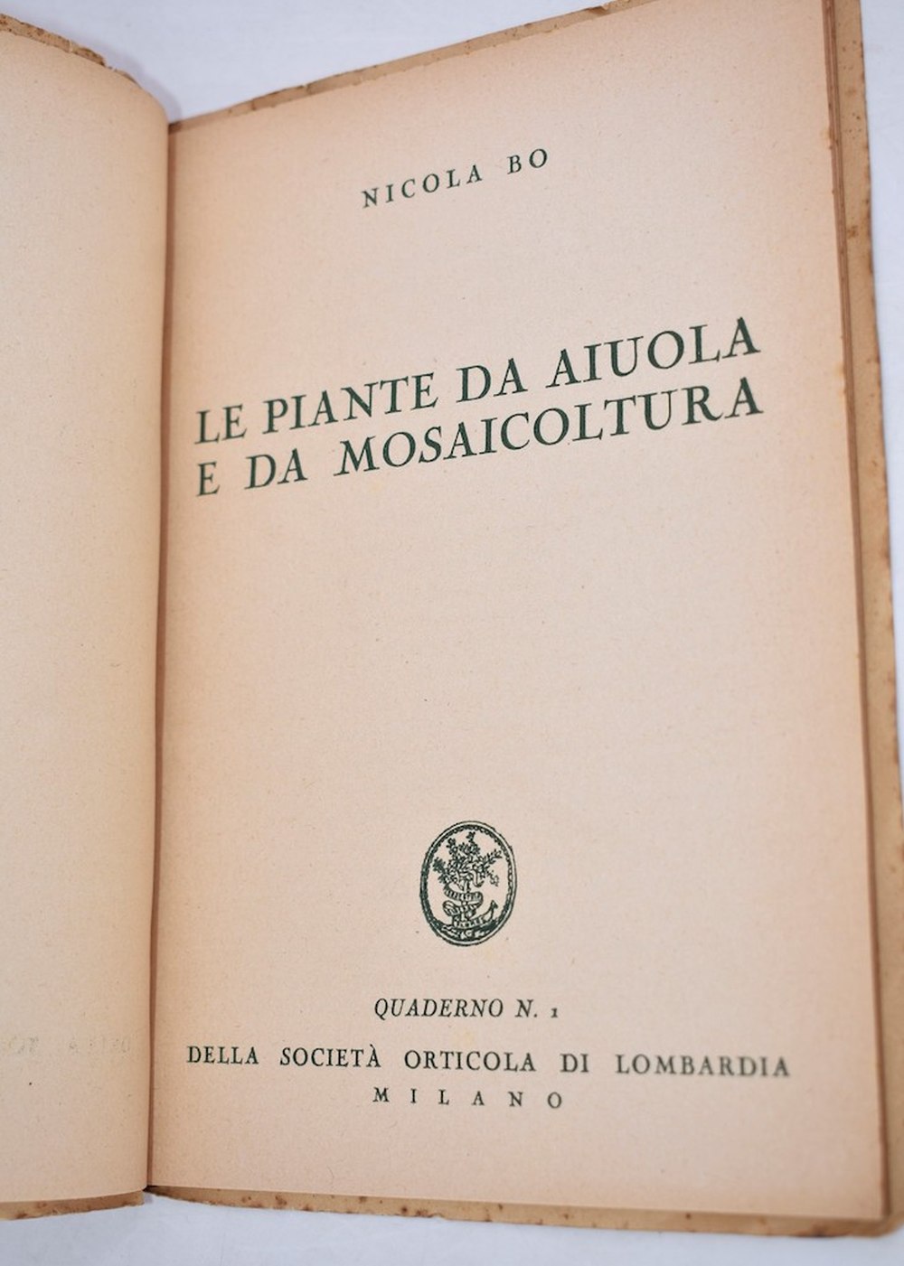 BO, Nicola. LE PIANTE DA AIUOLA E DA MOSAICOLTURA. 1934.