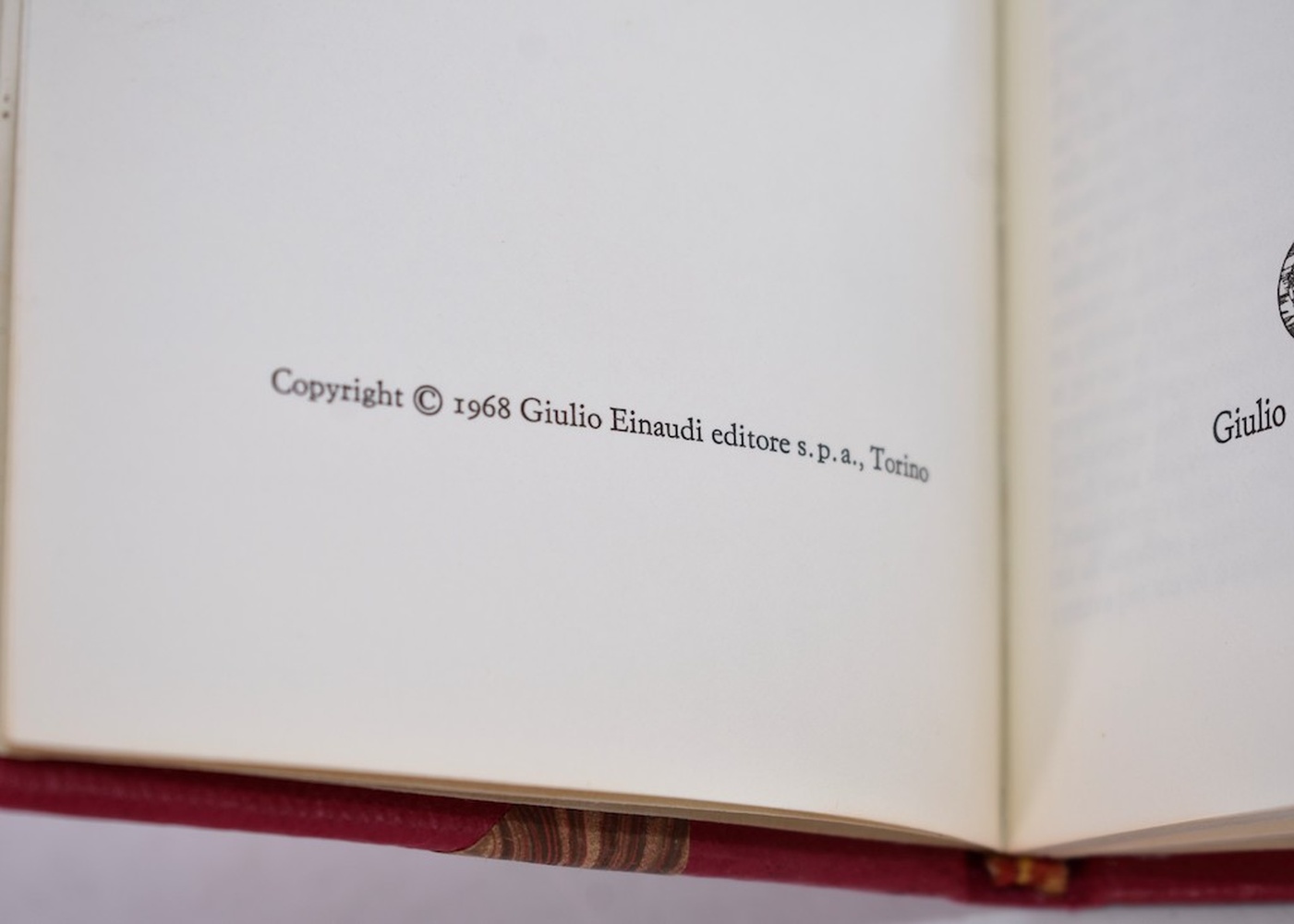 Einaudi, Torino. In-8º, mm. 188x112, pp. 92-4. Legatura artistica.