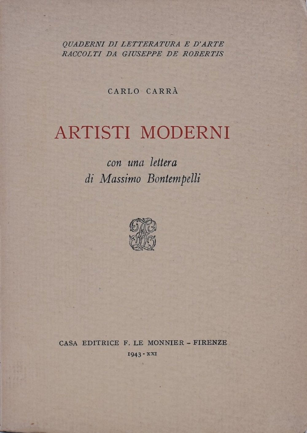 CARRA’, Carlo. ARTISTI MODERNI. CON UNA LETTERA DI MASSIMO BONTEMPELLI. 1943.