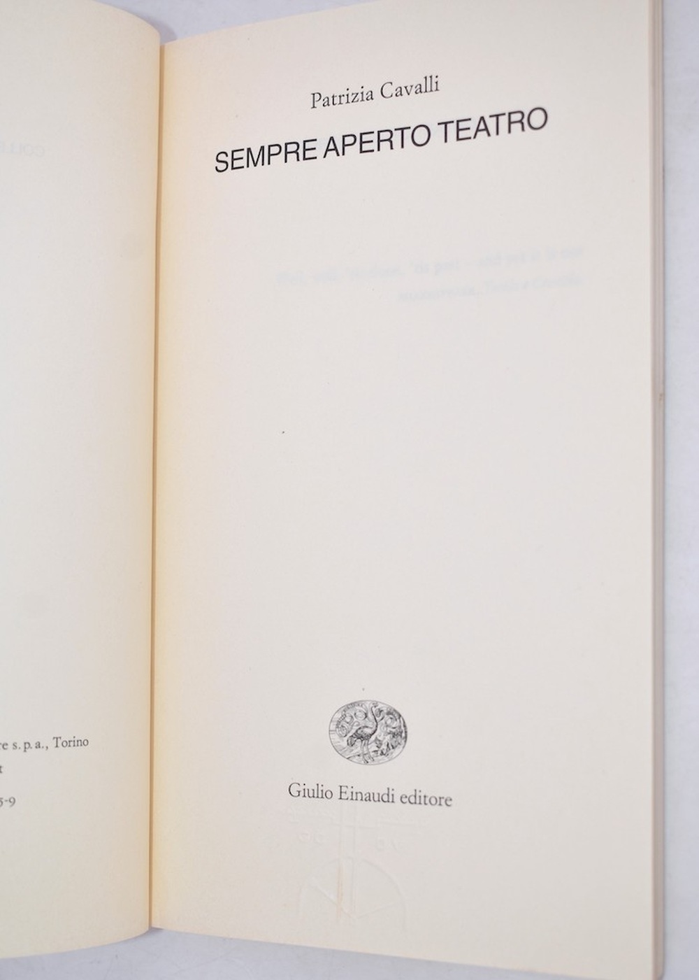 CAVALLI, Patrizia. SEMPRE APERTO TEATRO. 1999.