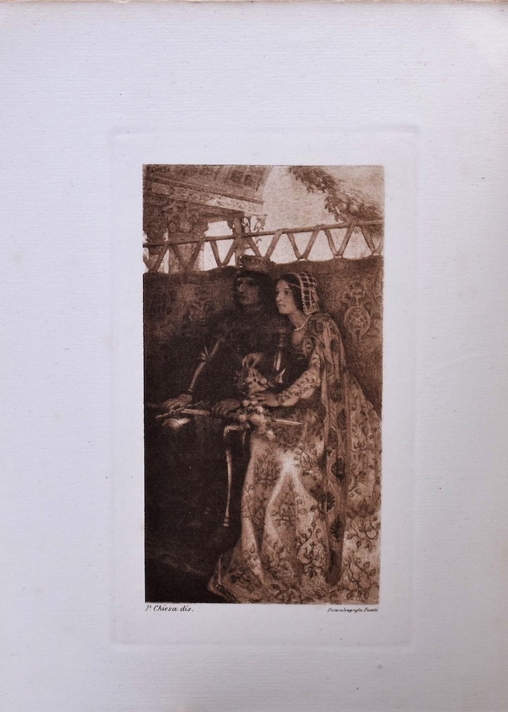 Prima edizione, con 3 fotocalcografie da disegni di Pietro Chiesa. Tassello editoriale di “A.F. Formiggini, editore in Modena” applicato al piatto. Brossura a colori con restauro al dorso e tracce d’uso. Si conservano nel volume alcuni articoli da quotidiani d'epoca.